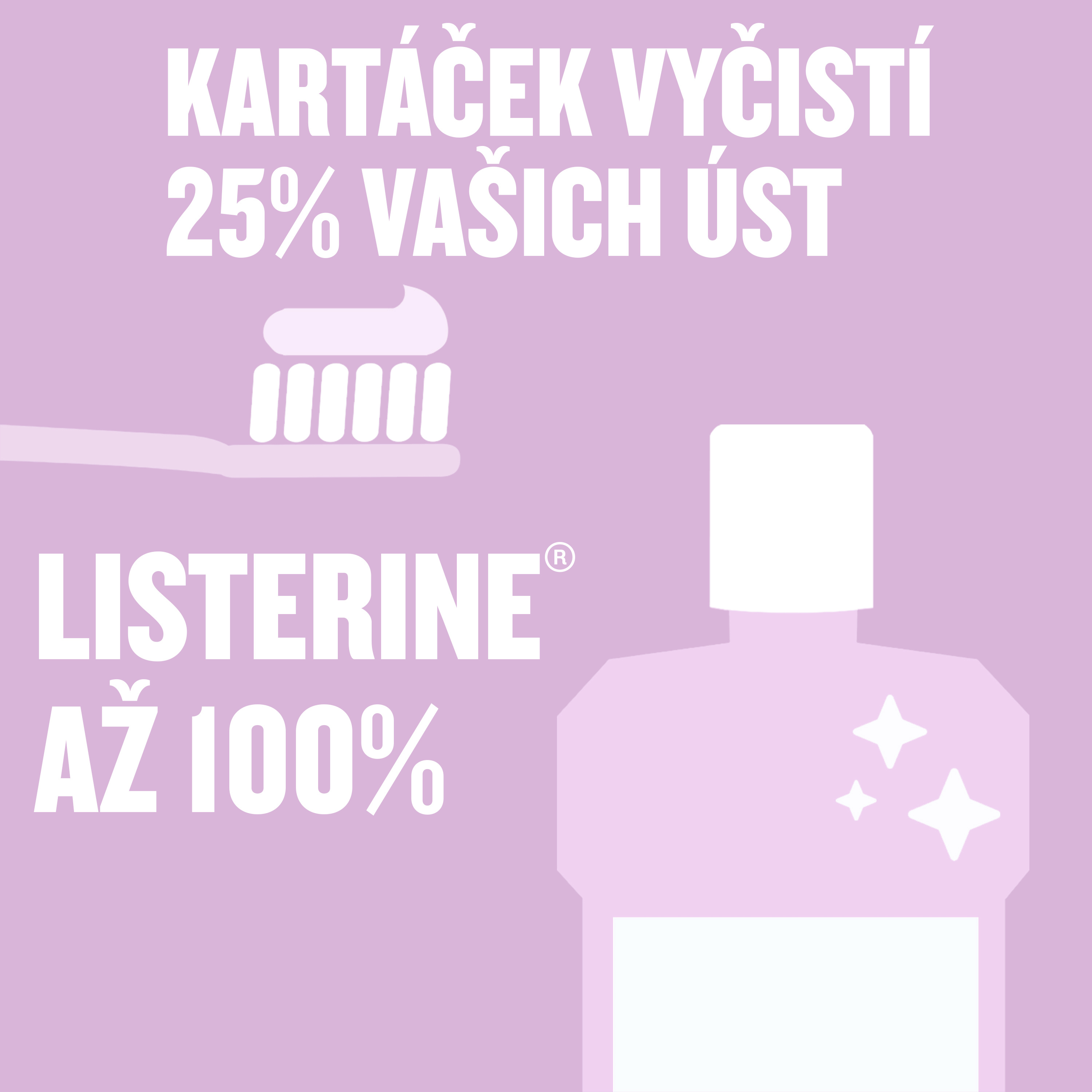 - Osvěžuje dech až na 24 hodin Listerine® má antibakteriální účinek - klinicky prokázaný. Zároveň ústní flóra zůstává v rovnováze.