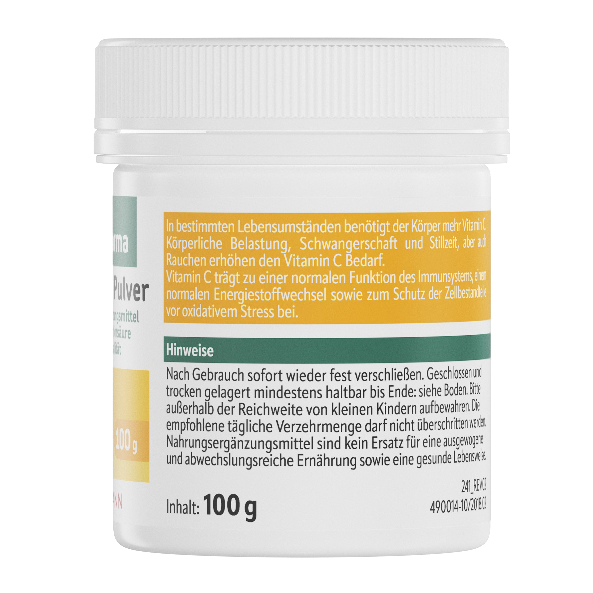 100% kyselina L-askorbová (vitamin C).
