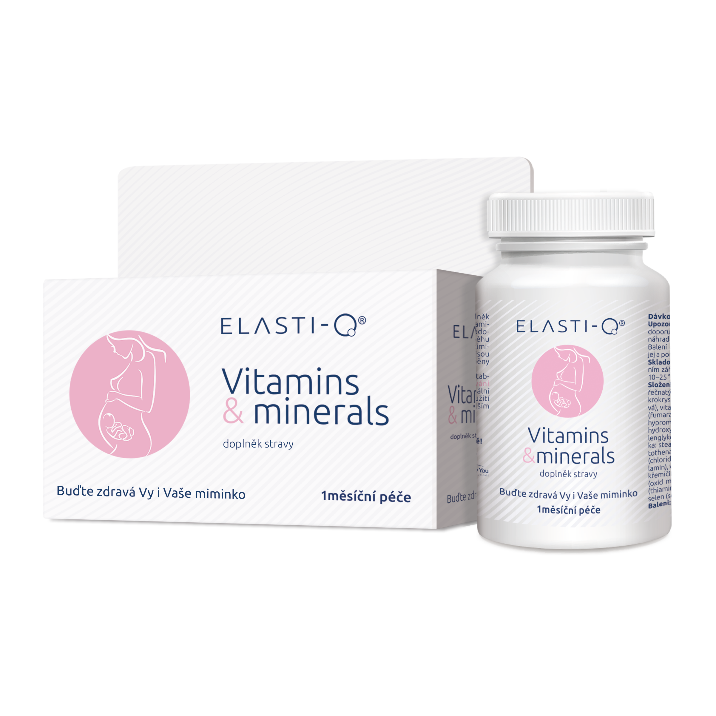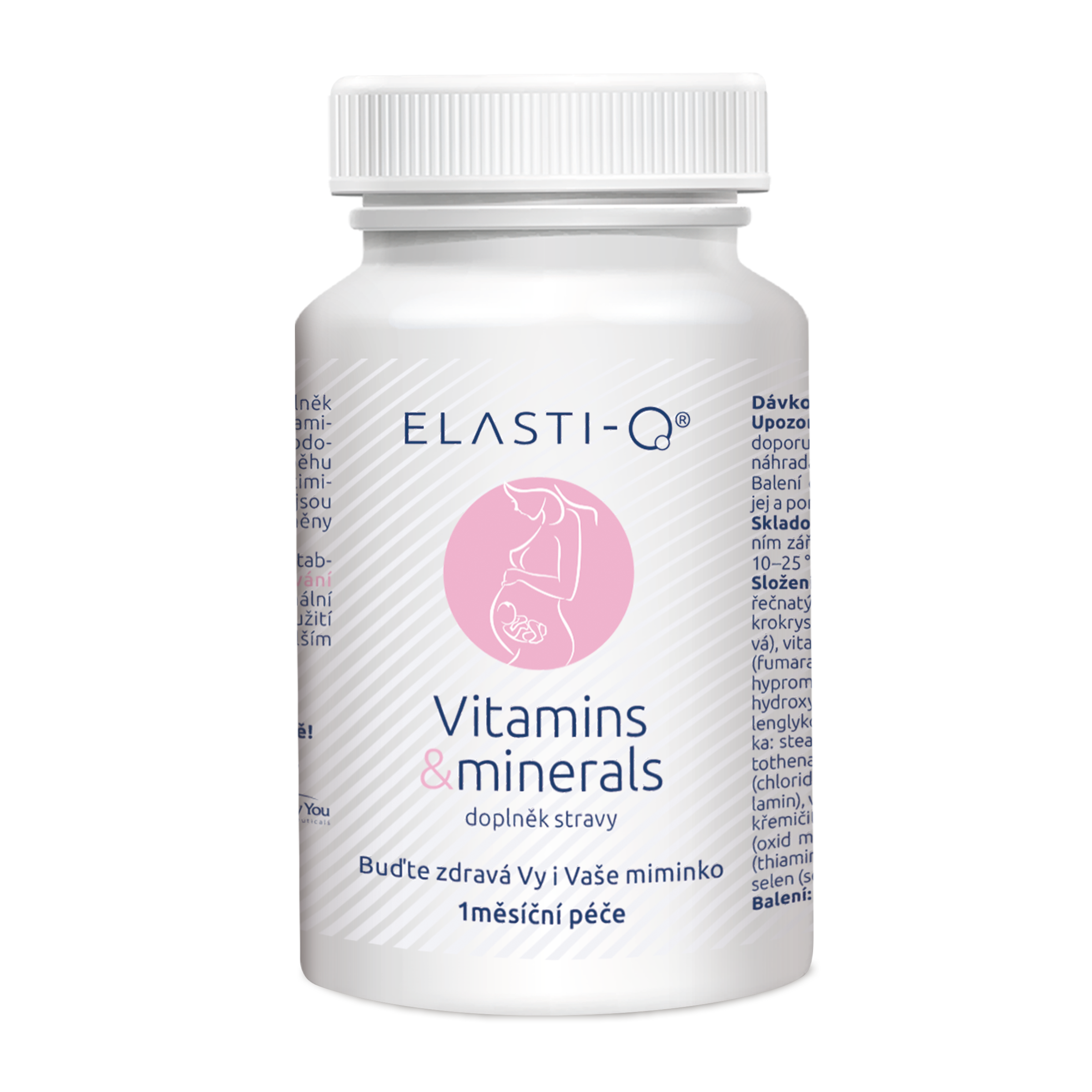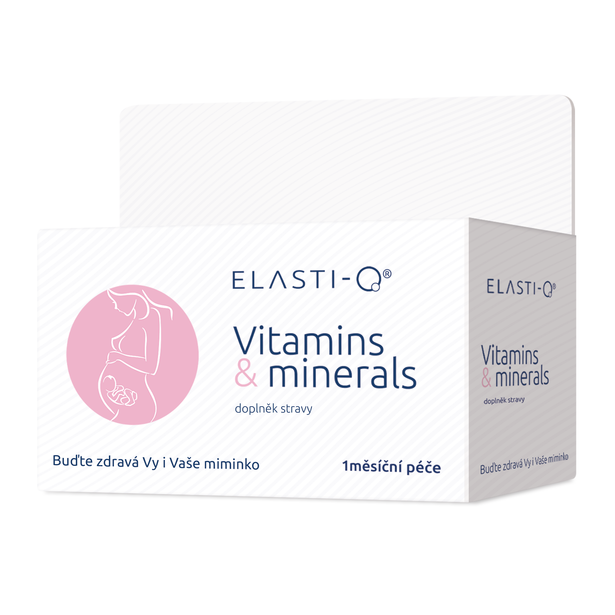 Výjimečné a unikátní složení doplňku stravy ELASTI-Q VITAMINY & MINERÁLY přispívá k normální syntéze DNA (zinek), k normálnímu růstu zárodečných tkání během těhotenství (kyselina listová) a zároveň se podílí na procesu dělení a diferenciaci buněk (kyselina listová a zinek). Obsahuje kombinaci látek, které přispívají k normální tvorbě červených krvinek (vitamin B12 a B6) a hemoglobinu (železo a vitamin B6). Pravidelným užíváním dochází ke snížení míry únavy a vyčerpaní, k normální funkci imunitního systému (vitamin C a B12) a k normálnímu vstřebávání železa (vitamin C) a vápníku (vitamin D). Další vitaminy a minerály mají blahodárný účinek na stav zubů (vitamin D), nehtů a vlasů (zinek) a na vzhled kůže (zinek).