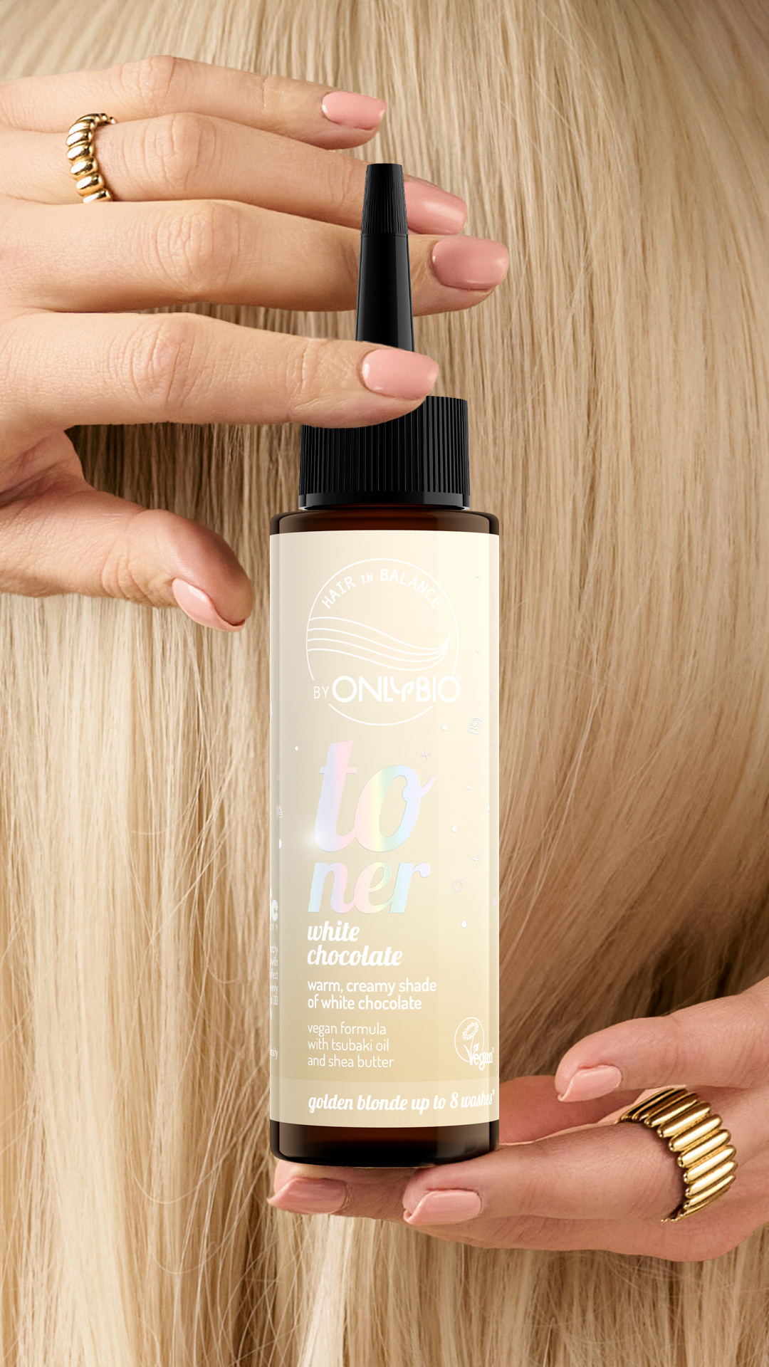 Vlasový toner OnlyBio Hair in Balance White Chocolate nabízí jemný odstín světle béžové blond s teplým podtónem, který připomíná krémovou bílou čokoládu. Světlým vlasům dodává hebký béžový tón s hřejivým nádechem, zatímco na tmavších vlasech je barevná změna méně výrazná.