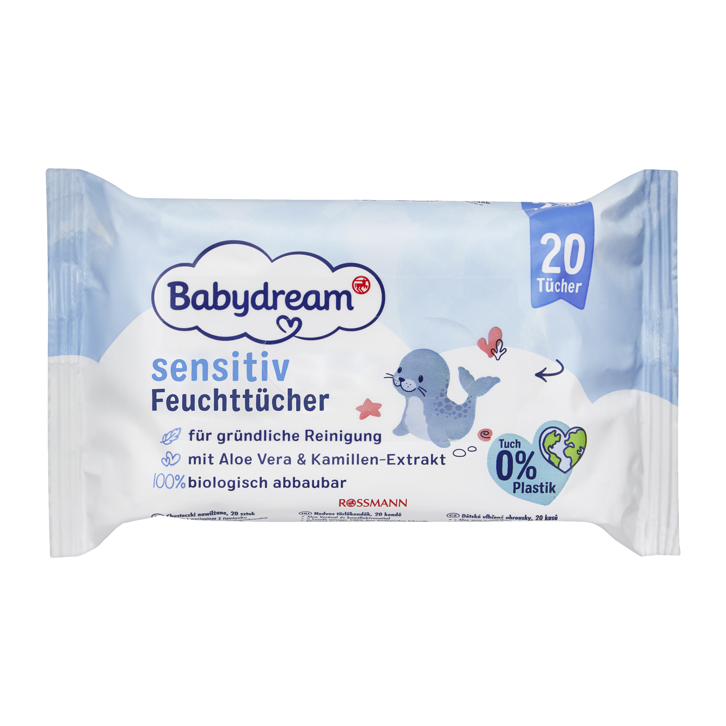 S našimi vlhčenými ubrousky Babydream jemně a důkladně očistíte jemnou pokožku vašeho dítěte. Ubrousky obsahují Aloe vera a výtažek z heřmánku a tyto složky pečují o pokožku obzvláště jemně a chrání ji před vysycháním.