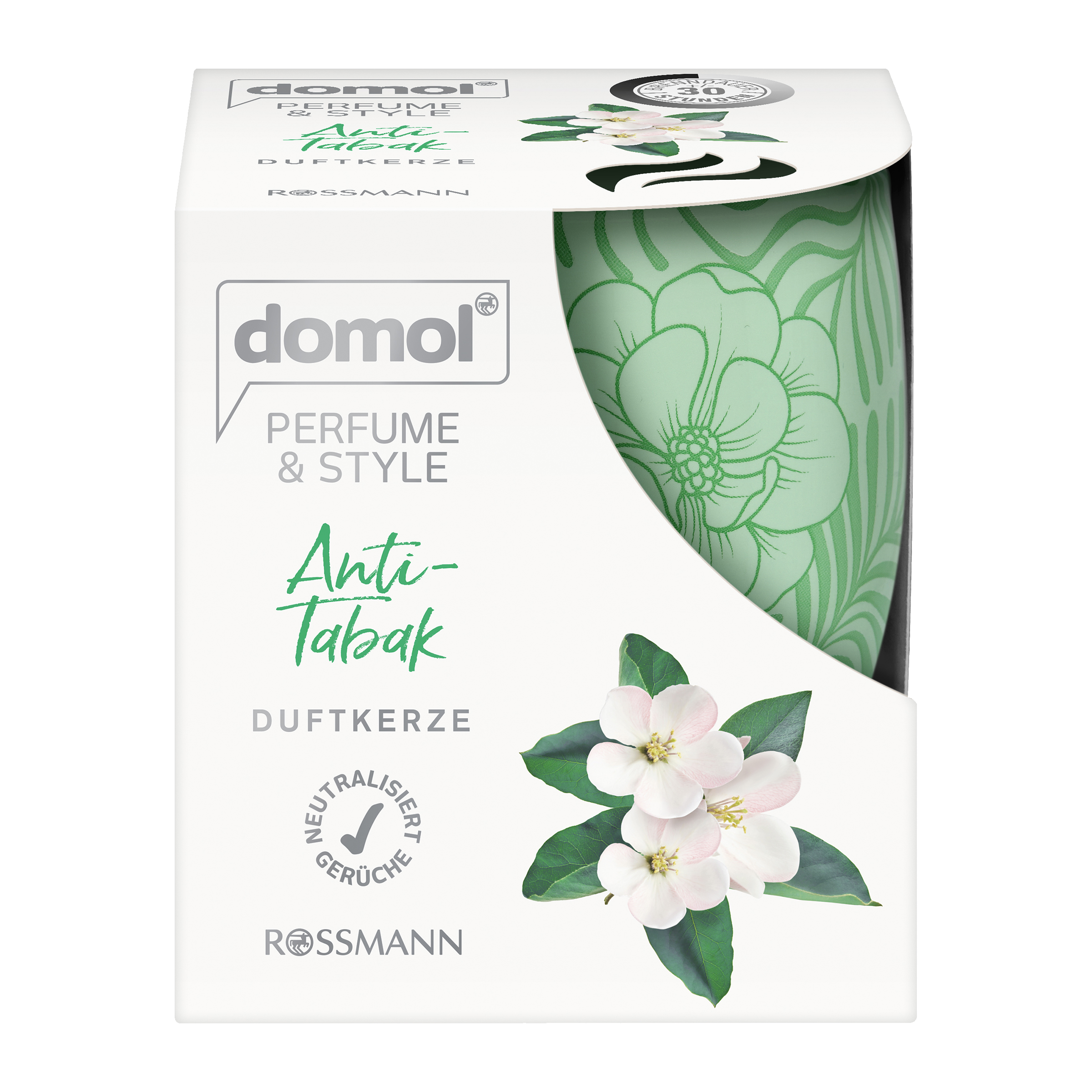 Těšte se na kouzelné chvíle při svíčkách. Tajemství vůní spočívá v emocích, které v nás probouzejí. Vonná svíčka Domol Perfume & Style Anti-Tobacco promění váš domov v oázu pohody. Uvolněte se při hře světla z plamene svíčky a nechte se okouzlit svěží vůní, která neutralizuje tabákové pachy. Technologie Neofresh® účinně neutralizuje zejména tabákové pachy.
