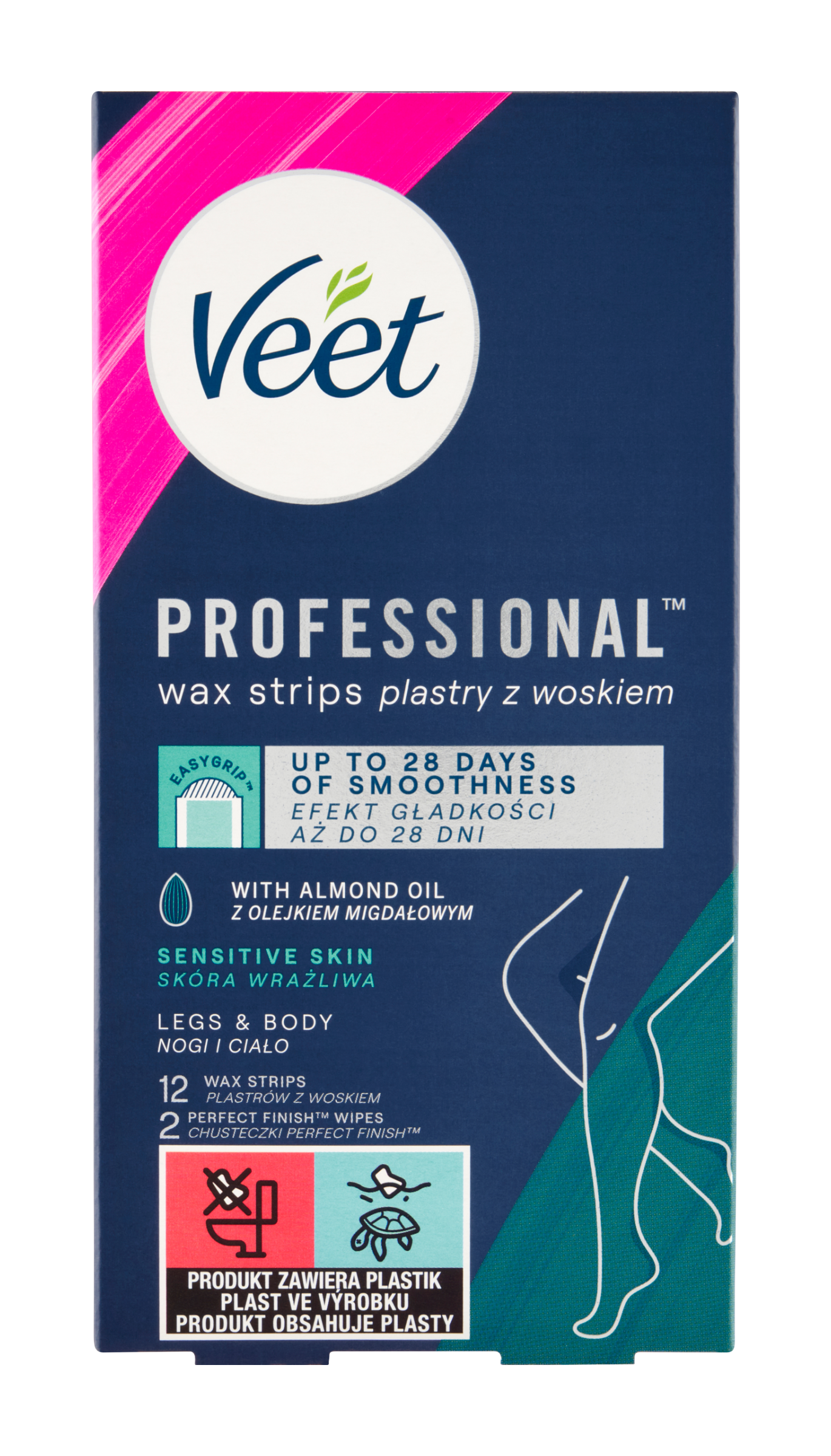 POKYNY PRO BEZPEČNÉ POUŽITÍ: Uchovejte vnější obal. Před použitím si přečtěte všechna bezpečnostní upozornění a pokyny a dodržujte je. Vhodné k použití na nohách, rukou, v podpaží a na linii bikin. NEVHODNÉ pro použití na hlavu, obličej, uši, kolem konečníku, genitálií a bradavek nebo na jiné části těla. Nepoužívejte na křečové žíly, opary, jizvy, znaménka, špinavou, nezahojenou, podrážděnou, spálenou pokožku nebo na pokožku, u níž se v minulosti vyskytly nežádoucí reakce na vosky. Před dalším odstraňováním chloupků vždy počkejte 72 hodin. Před použitím se poraďte se svým lékařem, pokud užíváte jakýkoli lék, který může mít vliv na pokožku, nebo pokud trpíte jakoukoli nemocí kůže. Používání vosku není vhodné pro seniory, diabetiky nebo osoby užívající perorální retinoidy. Pokud jste nikdy vosk nepoužívali, doporučujeme začít s odstraněním chloupků nohou. Použijte na citlivé části podpaží a bikin, pouze pokud již máte s přípravkem zkušenost. Před použitím se ujistěte, že je vaše pokožka suchá, nepodrážděná a nejsou na ní přítomny krémy, oleje nebo deodoranty. Před každým použitím vyzkoušejte reakci pokožky na malé části oblasti, kterou chcete ošetřit podle pokynů pro použití. Pokud po 24 HODINÁCH nedojde k žádné nežádoucí reakci, pokračujte v užívání. Pokud během používání zažíváte jakékoliv štípání nebo mravenčení, okamžitě odstraňte výrobek pomocí zadní části použitého pásku, ubrousku Perfect Finishᵀᴹ nebo dětského oleje a pak důkladně opláchněte studenou vodou. Pokud pocit pálení přetrvává, vyhledejte lékařskou pomoc. Nepoužívejte vosk na stejné ploše více než jednou. Pokožka může být krátce po použití citlivější, proto ji neškrábejte. Po použití doporučujeme počkat 24 hodin před použitím jakéhokoli parfémovaného výrobku, umělé opalovací techniky, před koupáním nebo opalováním. Pokud vám dojdou ubrousky Perfect Finishᵀᴹ, můžete použít dětský olej. K odstranění vosku nepoužívejte vodu, mýdlo ani alkohol. UDRŽUJTE MIMO DOSAH DĚTÍ. Při požití okamžitě vyhledejte lékařskou pomoc a ukažte lékaři vnější obal. Zabraňte kontaktu s očima. Při zasažení očí okamžitě důkladně vypláchněte oči velkým množstvím vody a vyhledejte lékařskou pomoc. Všechny zbývající pásky skladujte na chladném a suchém místě.