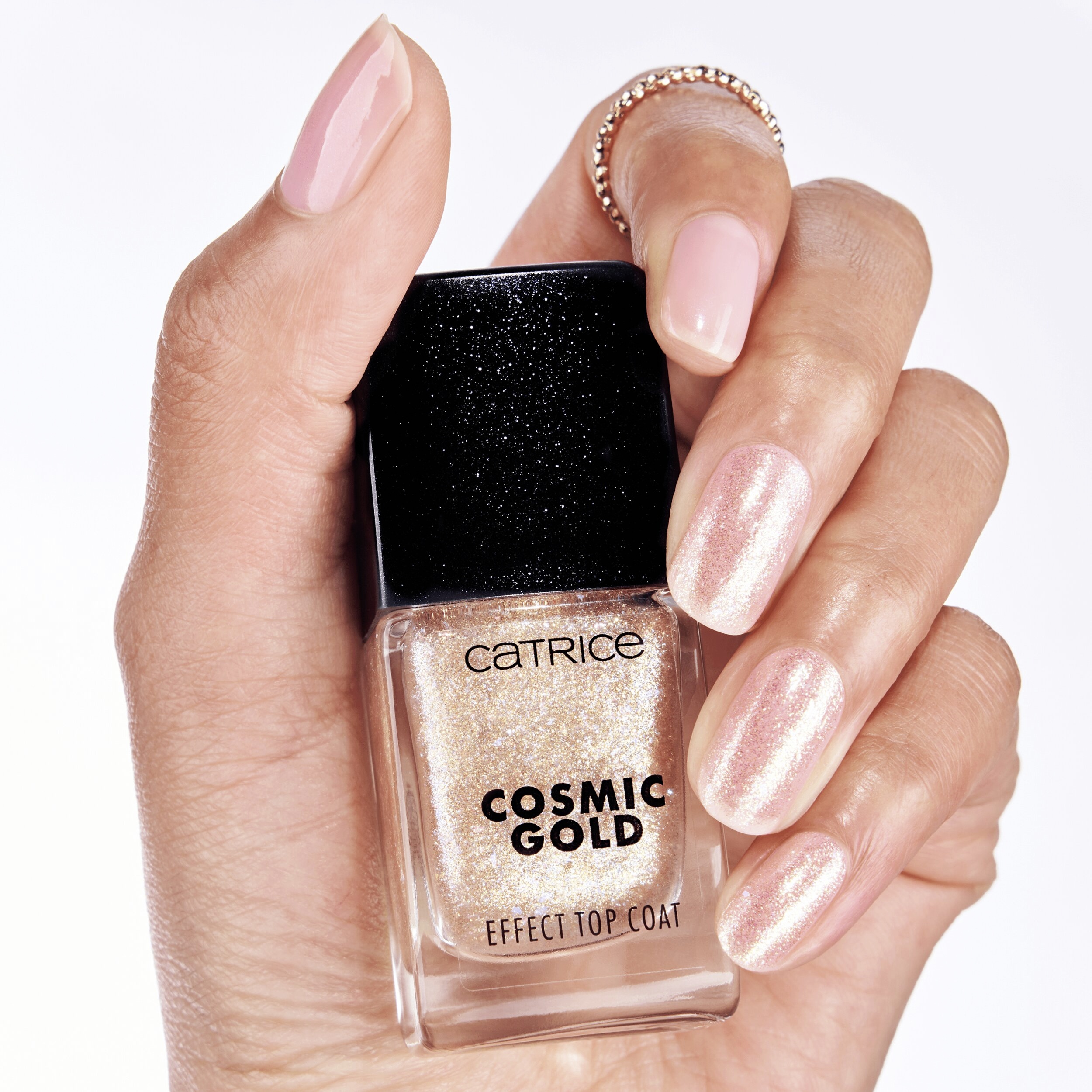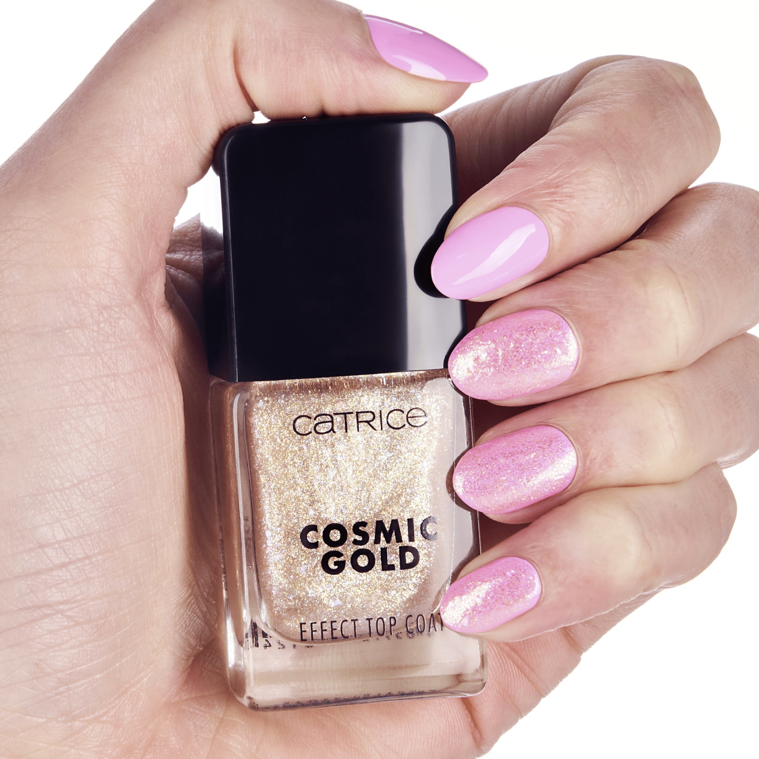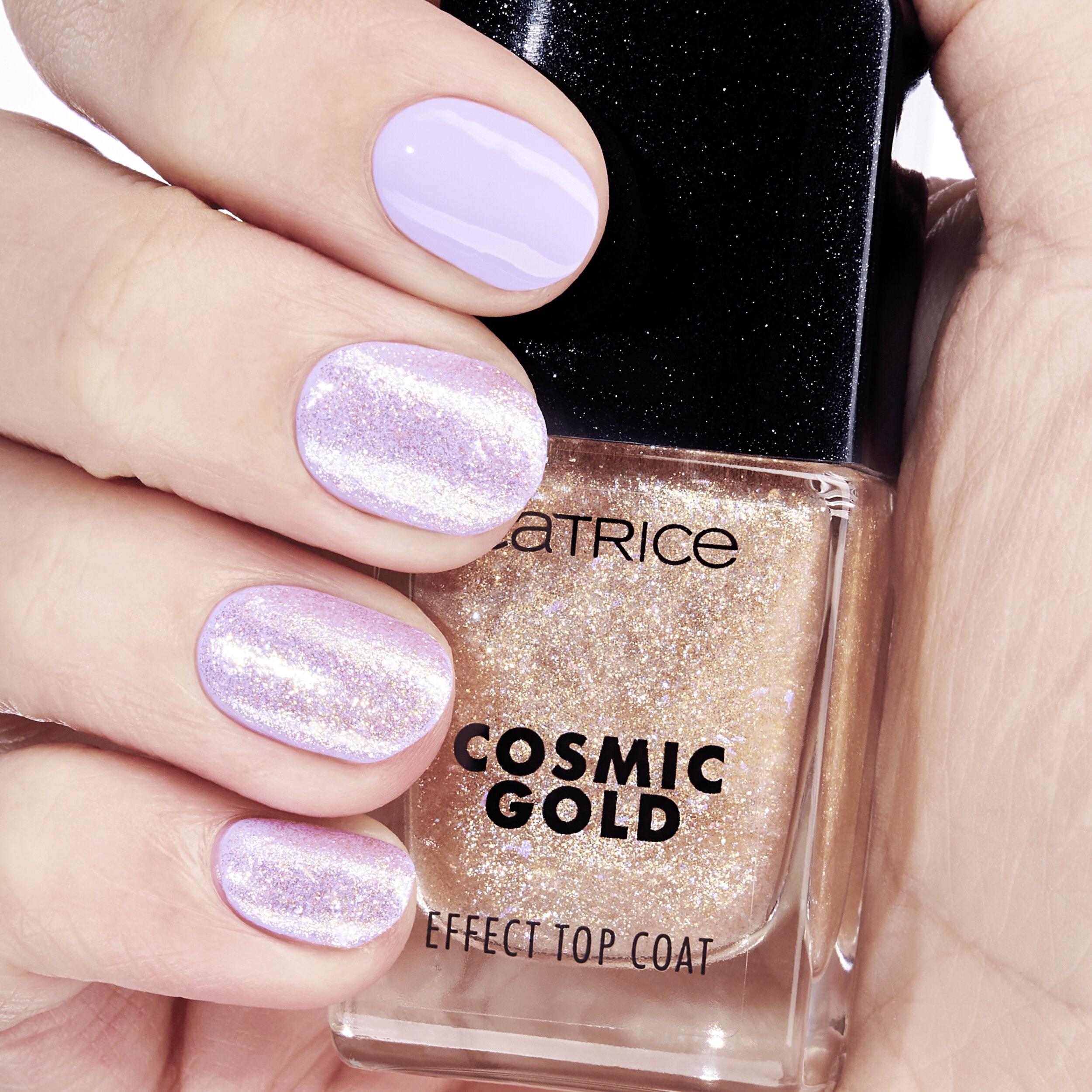 Pokud chcete dodat svým nehtům jen extra dávku zlatého třpytu, naneste Catrice krycí lak na nehty samostatně. Chcete-li zkombinovat nepřehlédnutelný zlatý efekt s barevným lakem na nehty, jednoduše ho na něj naneste. Pokud chcete, aby vícebarevné třpytky opravdu vynikly, použijte jako základ tmavý lak na nehty.
