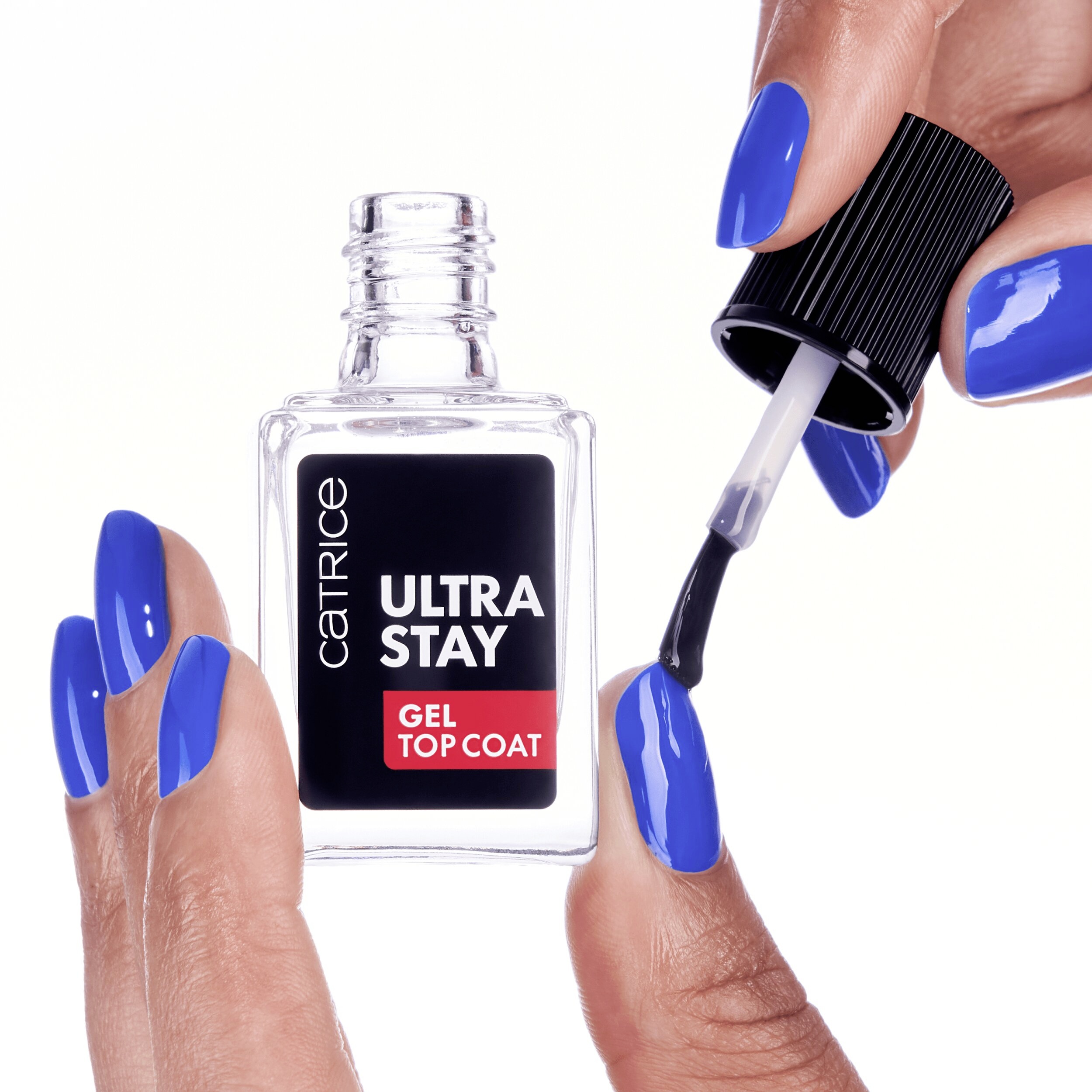 Pro zajištění dlouhotrvající manikúry naneste Catrice Krycí lak na nehty Ultra Stay. Chrání nehty před poškozením a dodává nanesenému laku na nehty plnější gelový efekt.