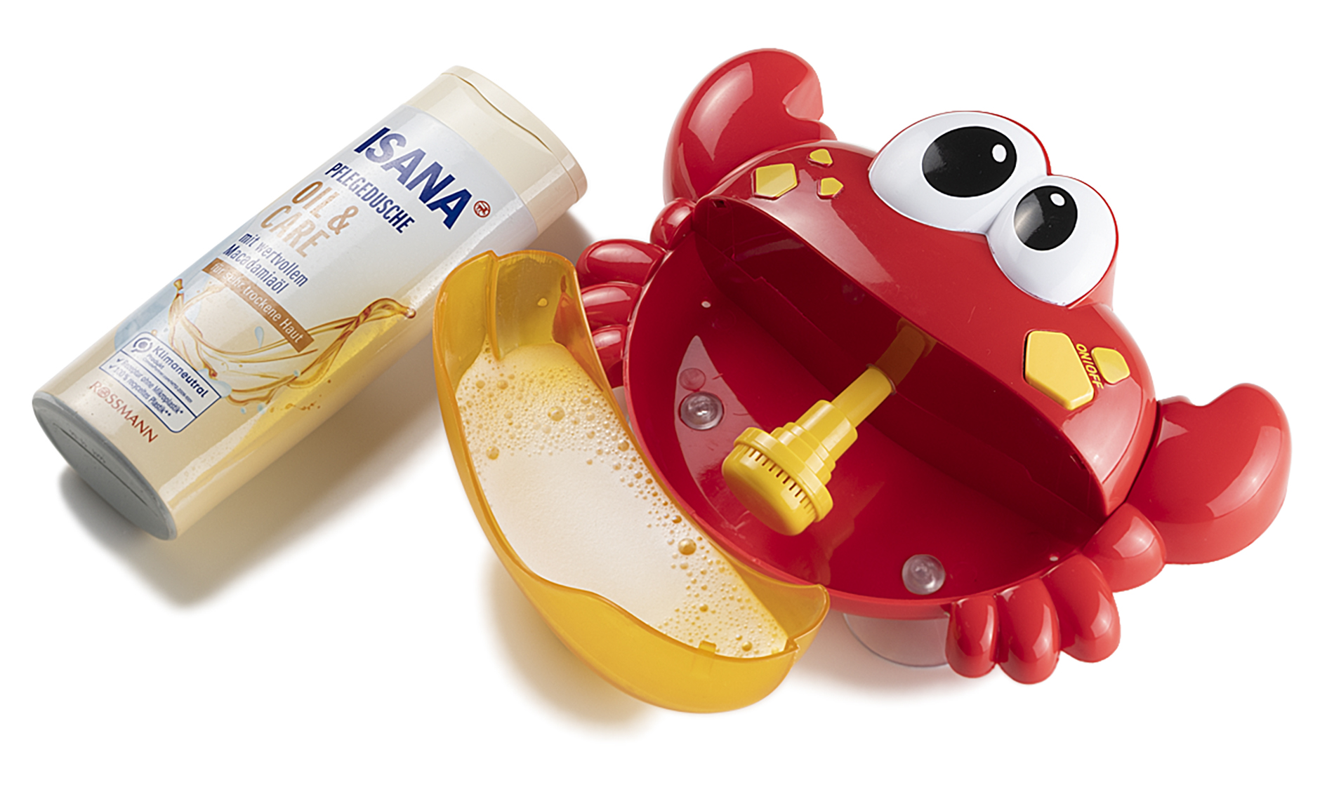 Zábavný přístroj na tvorbu bublinek ve tvaru kraba zpříjemní každé koupání. Díky praktickým přísavkám jej lze snadno připevnit na hladký povrch v koupelně. Funguje na baterie, které jsou součástí balení, takže je připraven k okamžitému použití.