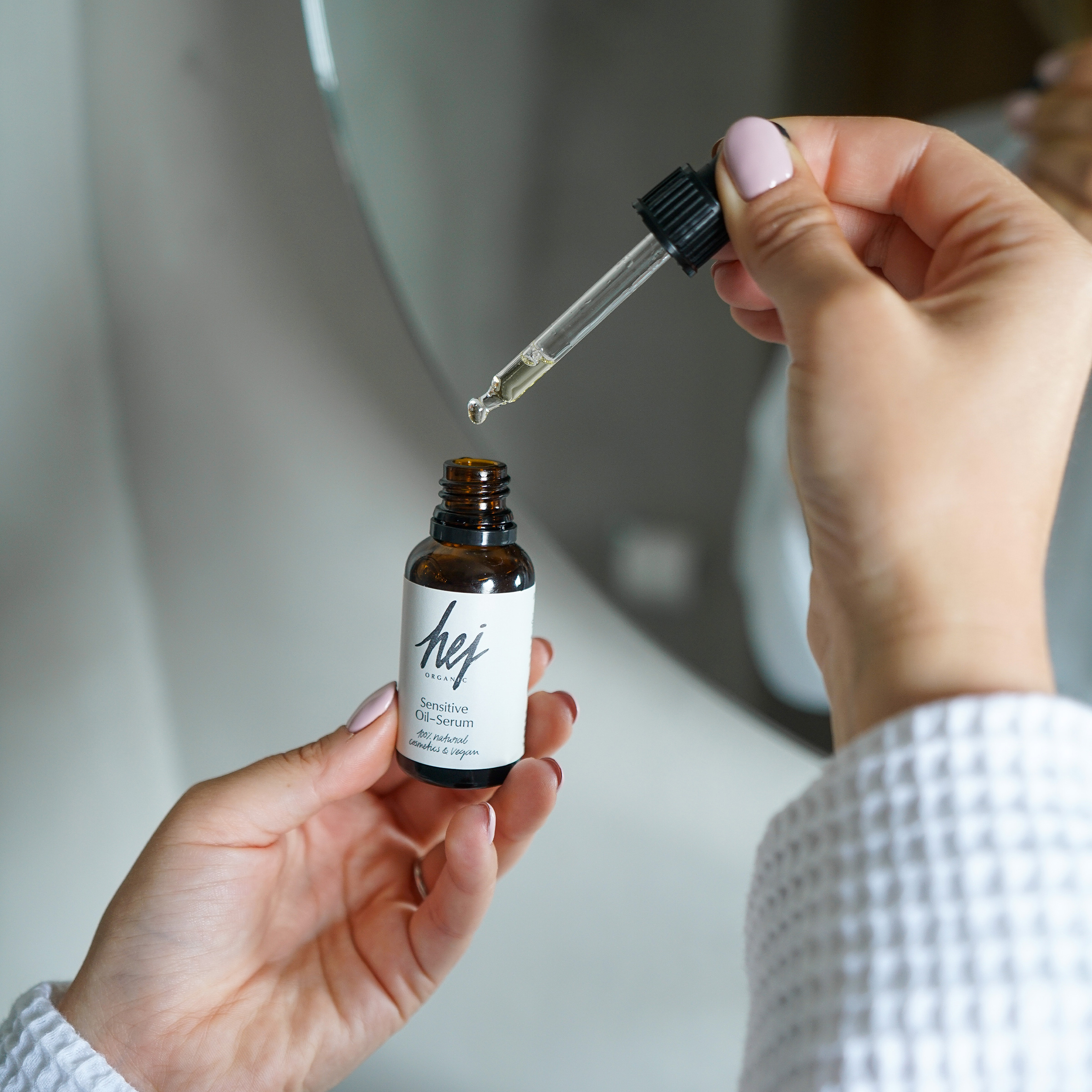 Hej Organic vyživující olej pro citlivou pleť s velmi lehkou strukturou dodává pokožce hedvábný nemastný pocit a rozjasňuje ji. Kombinace velmi kvalitních surovin zajistí vaší pleti potřebnou výživu, i když máte citlivou pleť na kterou nelze nanést například hutnější krém. Olej lze používat místo krému, kdy aplikujeme 2-3 kapky na vyčištěnou pleť nejlépe ráno a večer.