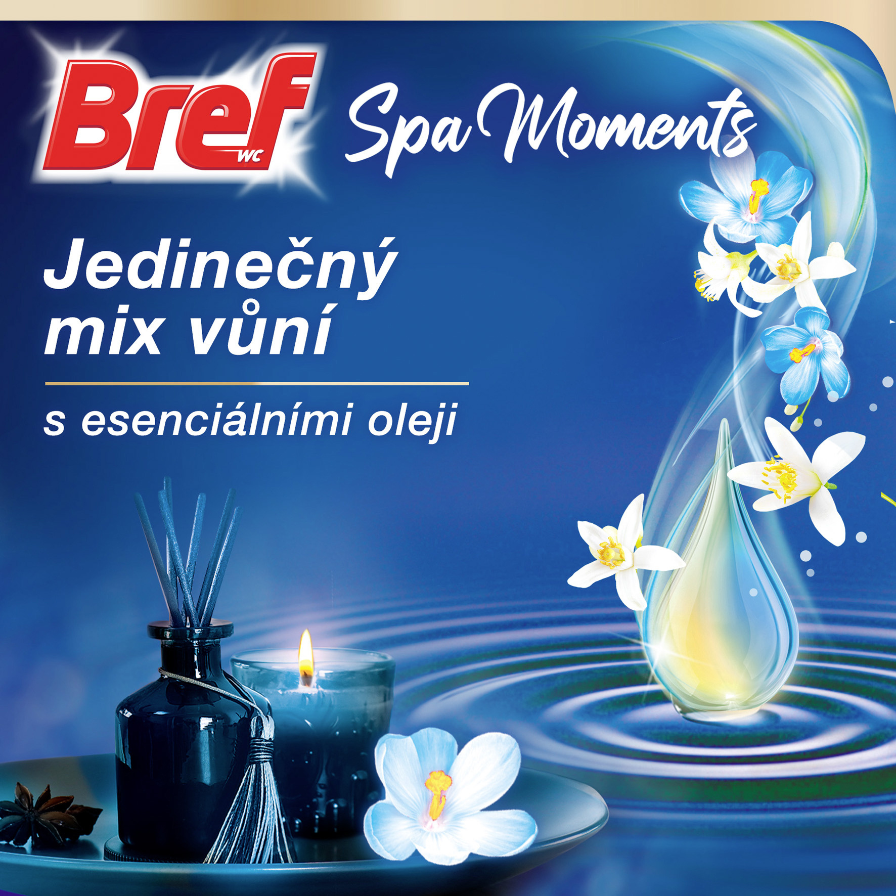 Bref Spa Moments Vitality tuhý WC blok - Zažijte relaxační a dlouhotrvající vůni při každém spláchnutí! Odpojte se od vnějšího světa a užijte si čas pouze pro sebe. WC blok Bref Spa Moments poskytuje relaxační dlouhotrvající vůni a proměňuje vaši toaletu v oázu klidu. Příjemná vůně se uvolňuje s každým spláchnutím a navozuje útulnou a pohodovou atmosféru. Závěsný WC blok má jedinečné složení s luxusními esenciálními oleji, které byly pečlivě vybrány pro zklidnění vašich smyslů.