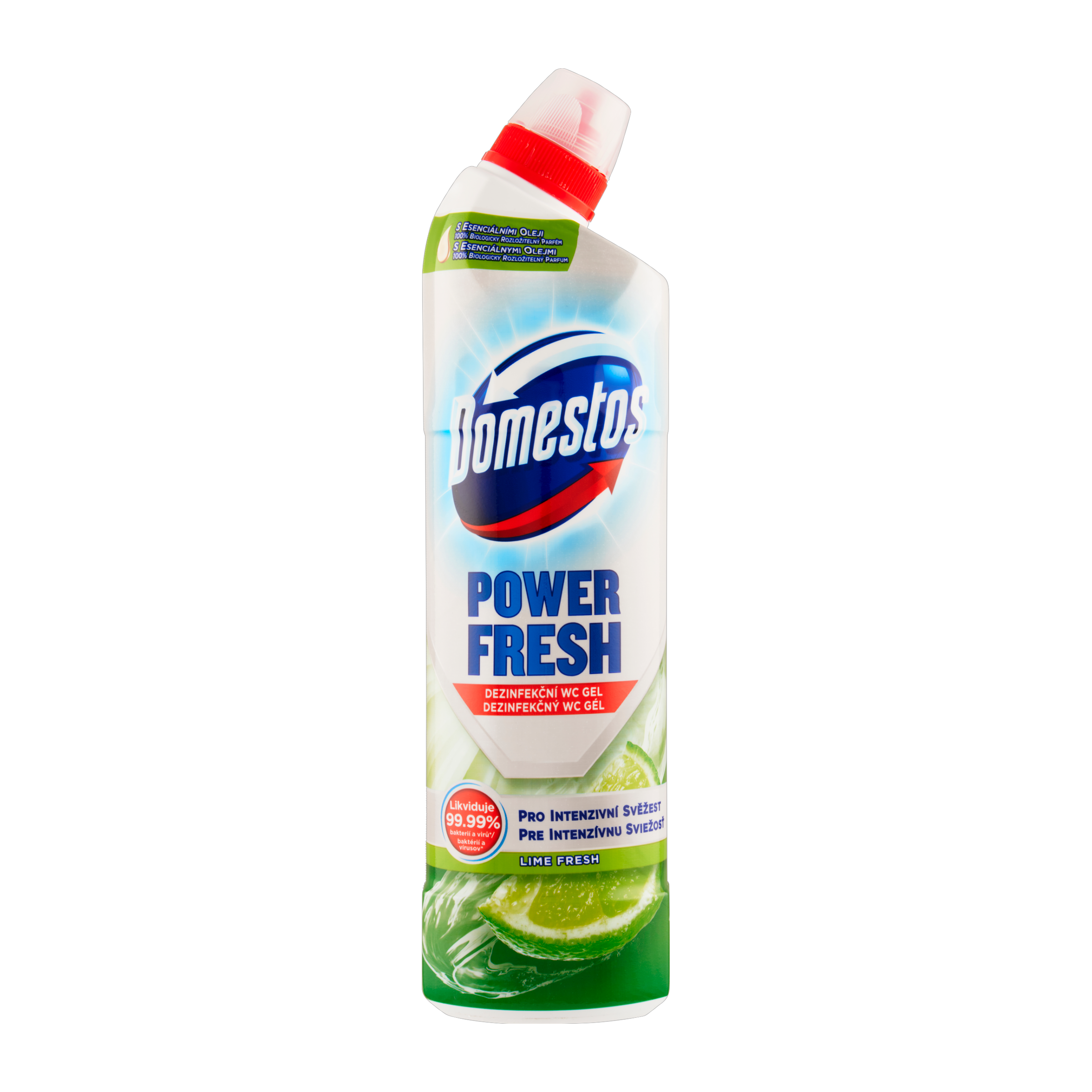 WC čistič Domestos Power Fresh Lime přináší intenzivní svěžest a hygienickou čistotu do každé toalety. Tento dezinfekční WC gel s biologicky rozložitelným parfémem účinně eliminuje zápach, ničí 99,99 % bakterií a virů* a zároveň bojuje proti vodnímu kameni i zašlé špíně. Obohacený o esenciální oleje, zanechává toaletu nejen čistou, ale i dlouhodobě provoněnou svěží limetkovou vůní.