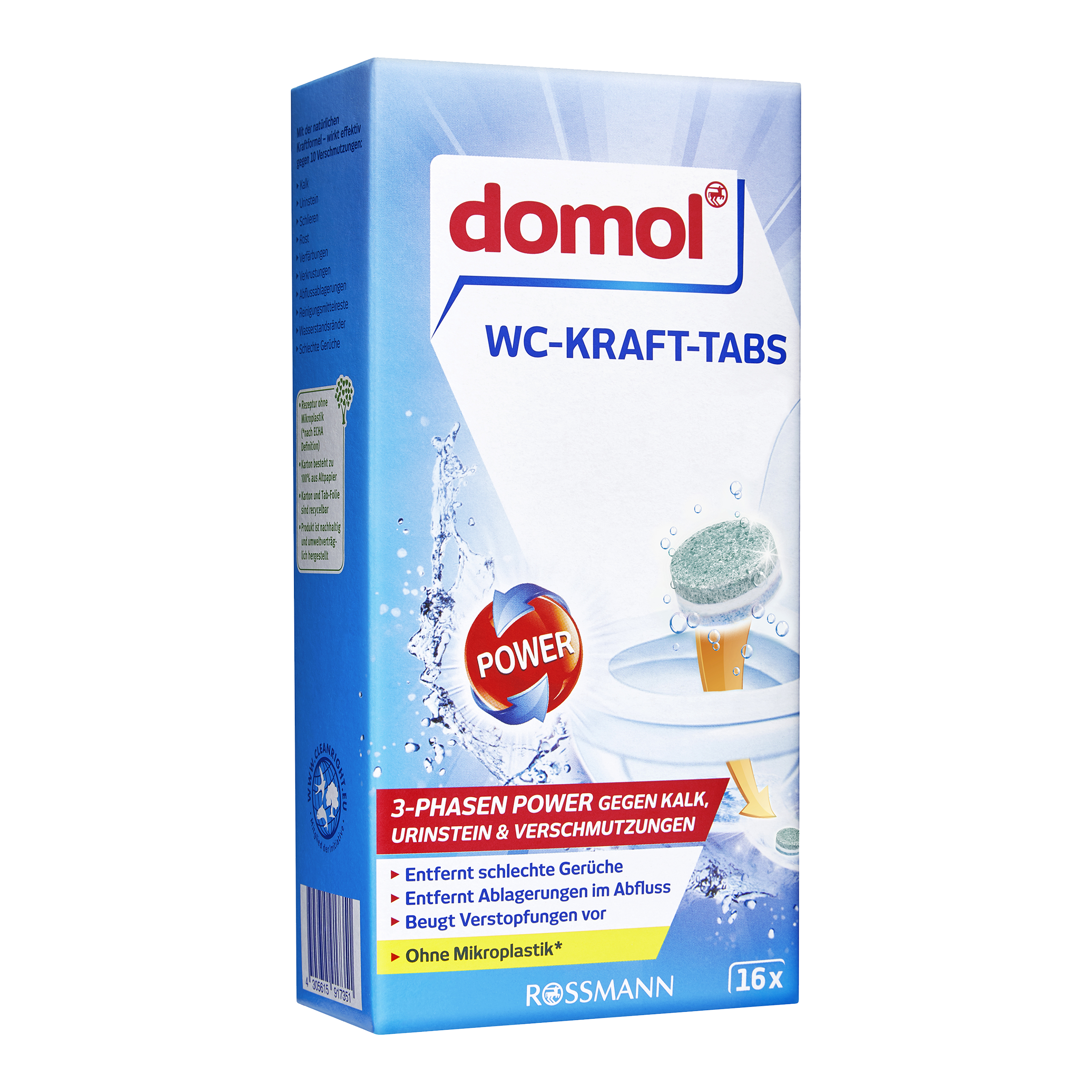 Těšte se na plnou čistící sílu v koupelně. WC tablety spolehlivě odstraňují usazeniny vodního kamene, usazeniny moče a nečistoty i na nepřístupných místech a zanechávají toaletu bez zápachu.