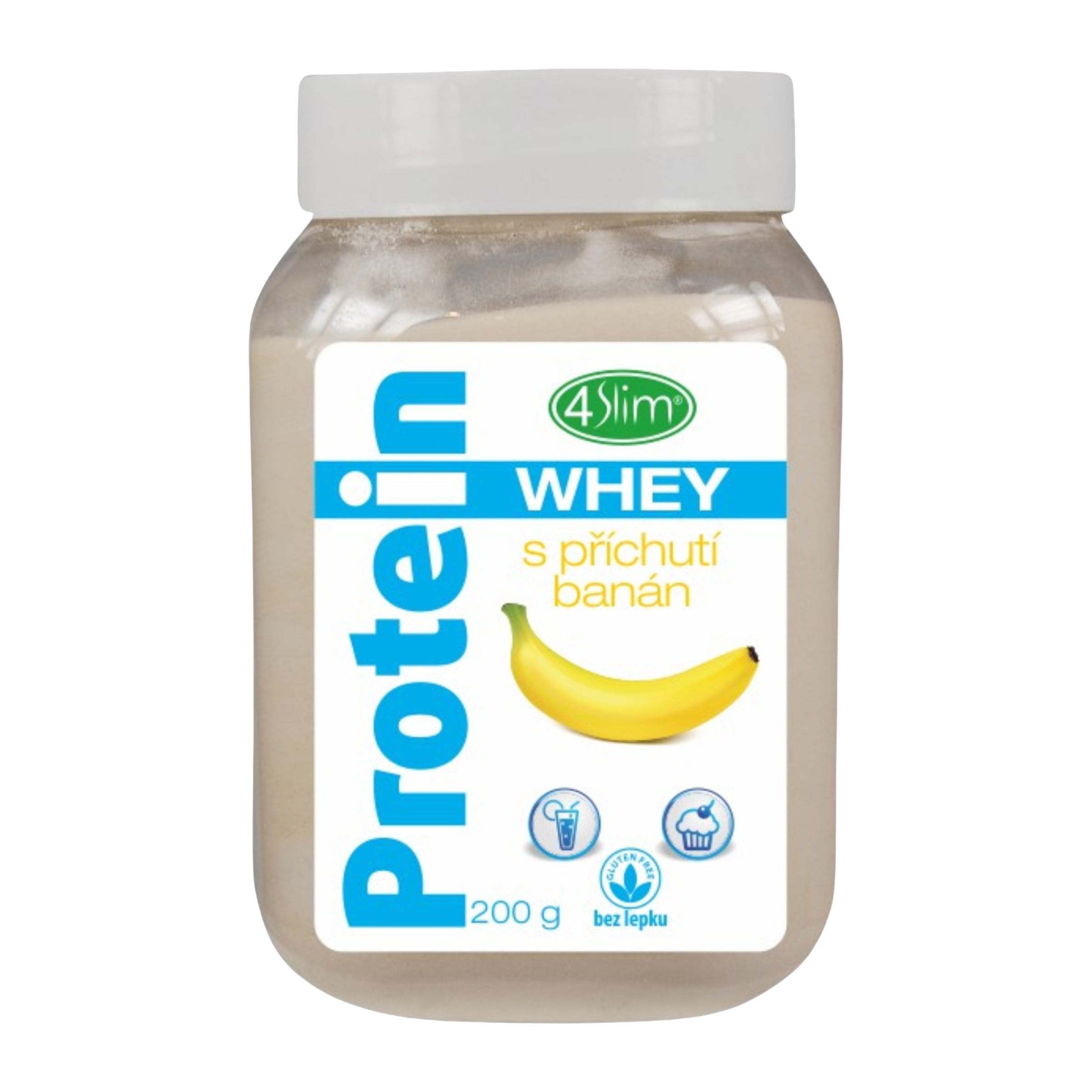 syrovátkový proteinový koncentrát, emulgátor: slunečnicový lecitin, příchuť banán ((kyseliny: kyselina citrónová, kyselina jablečná; vláknina: inulin; aromata; sladidla: acesulfam K, sukralóza, steviolglycosidy (extrakty ze stévie); regulátor kyselosti: citrát sodný; protispékavá látka: fosforečnan vápenatý; zahuštovadla (guma guar, arabská guma); kyselina L-askorbová (vitamin C); barvivo: kurkumin))