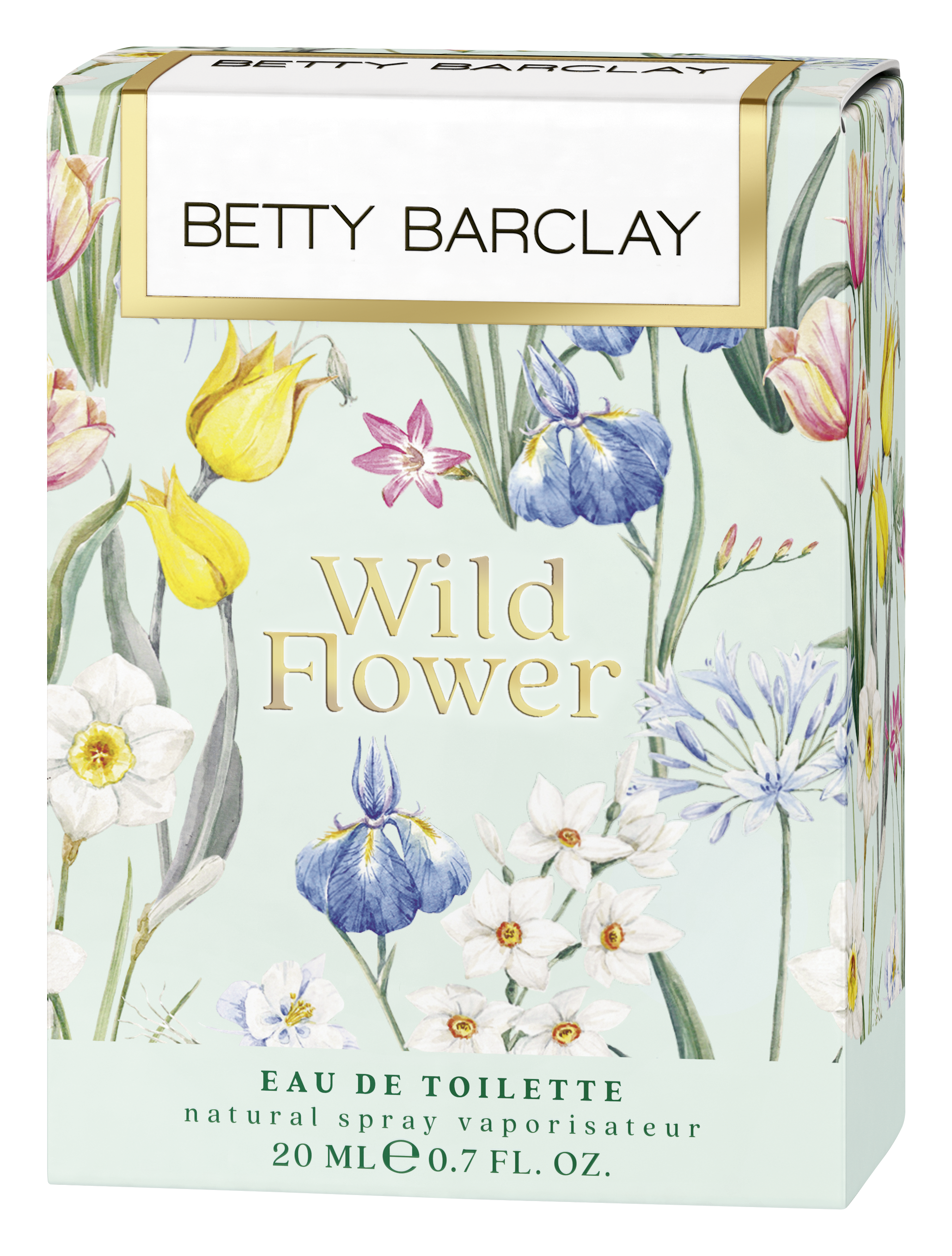 Svěží, květinová a žensky smyslná toaletní voda Betty Barclay Wild Flower podtrhuje charisma sebevědomých, silných žen, které jdou svou vlastní cestou. Skvostná květinová kytice jasmínu, růže a pivoňky se setkává se svěžestí a šumivostí citronu, malin a bobulí růžového pepře. Hřejivé krémové tóny dodávají jedinečné vonné kompozici smyslné vyzařování. Parfémovaná voda Betty Barclay Wild Flower nejenže vyzařuje vůni moře divokých květin, ale je také veganská a neobsahuje žádné složky živočišného původu.