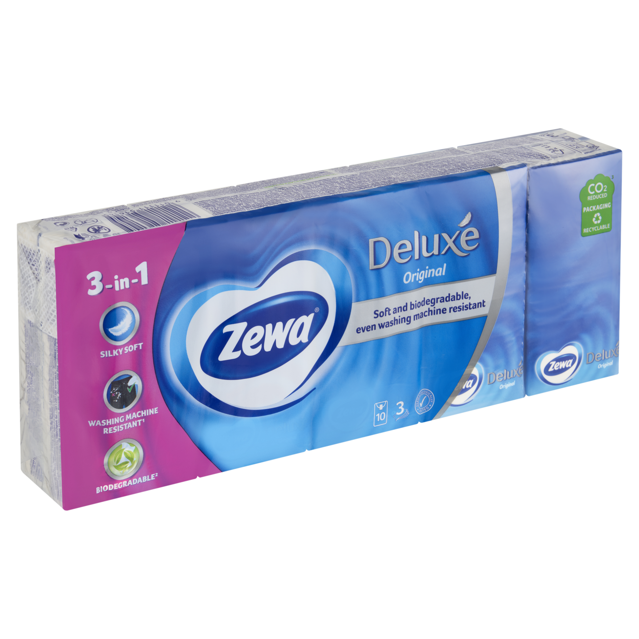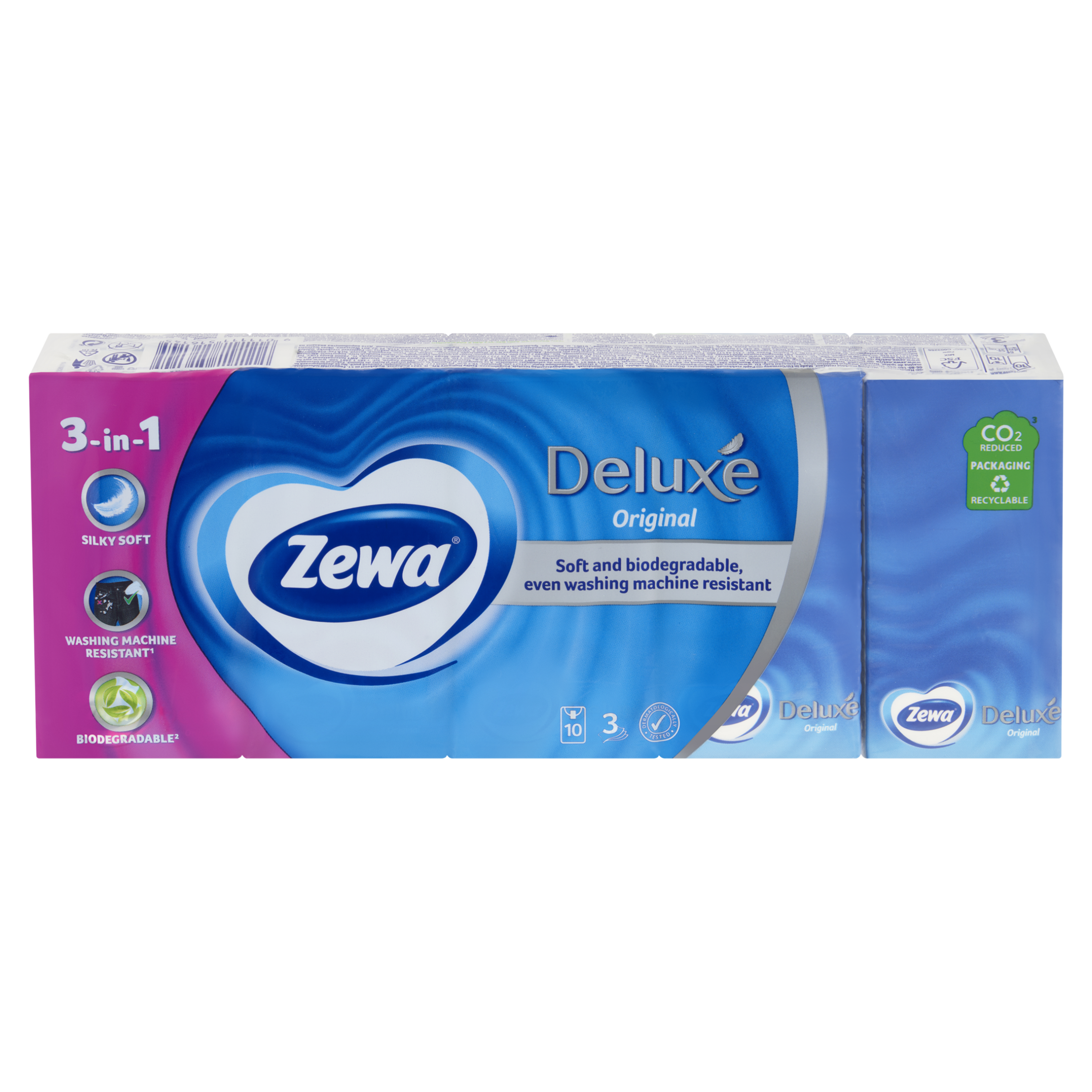 Tyto třívrstvé kapesníčky jsou příjemně jemné a zároveň pevné, takže potěší opravdu každého. Bez jakékoli parfemace, v klasické bílé barvě. Pokud kapesníky Zewa omylem vyperete v pračce tak se nemusíte bát, nerozpadnou se, jsou totiž odolné vůči praní, avšak i přesto si zachovávají svou jemnost. Obal produktu je recyklovatelný. Tyto kapesníčky se mohou chlubit certifikací FSC, to znamená, že výrobek pochází ze šetrně obhospodařovaných lesů.