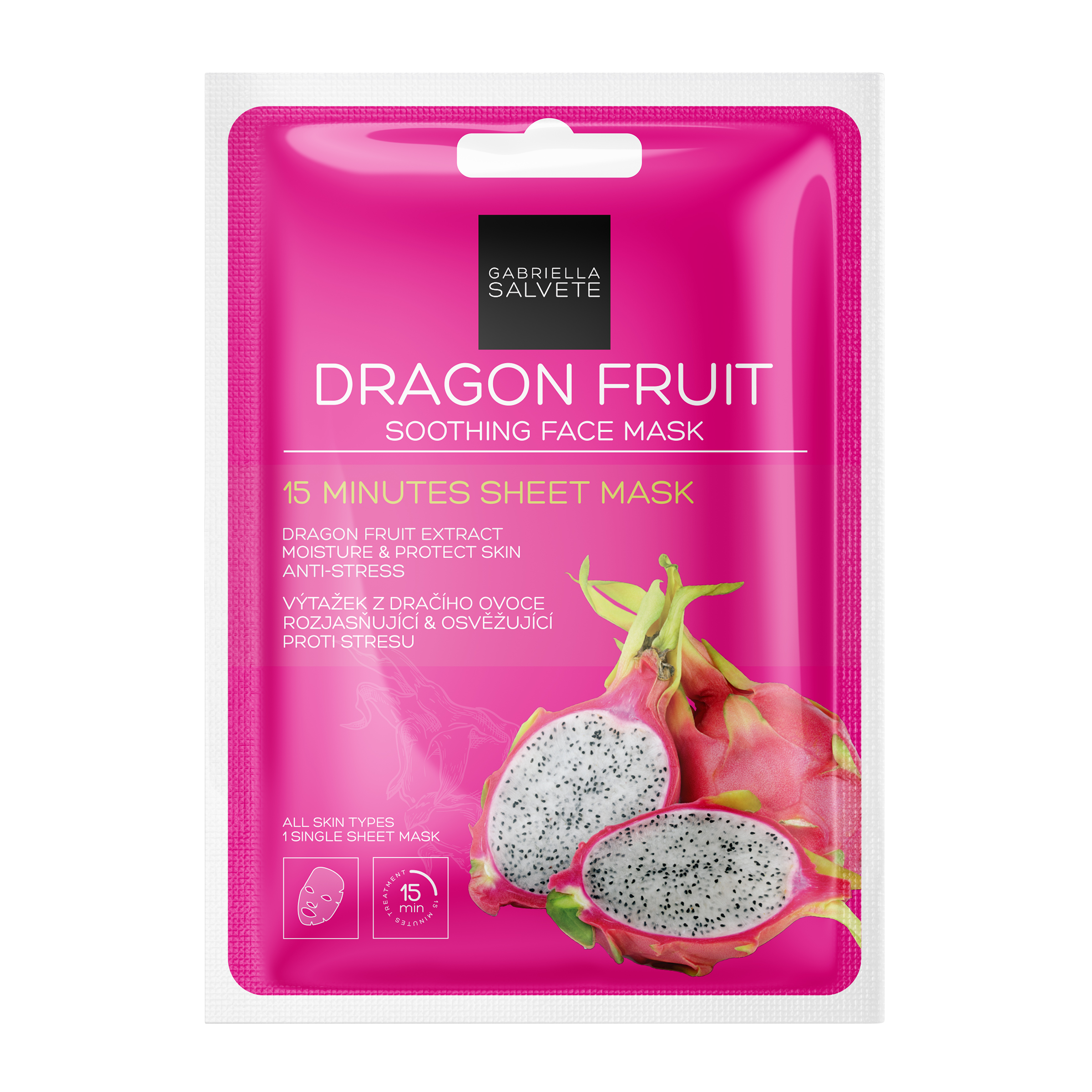 Nejenže vám stres znepříjemňuje život, ale už začal působit i na vaši pleť? Máte šanci nad ním vyzrát a svou pleť zbavit jeho působení. Obličejová maska Gabriella Salvete Face Mask Dragon Fruit vám s tímto problémem velmi efektivně pomůže. Proč se stresovat, když můžete relaxovat s maskou Gabriella Salvete Face Mask Dragon Fruit! Výtažek z dračího ovoce chrání a zklidňuje pleť, pleť bude po použití rozjasněná a svěží, chladivý pocit vám zpříjemní vaší chvilku odpočinku.
