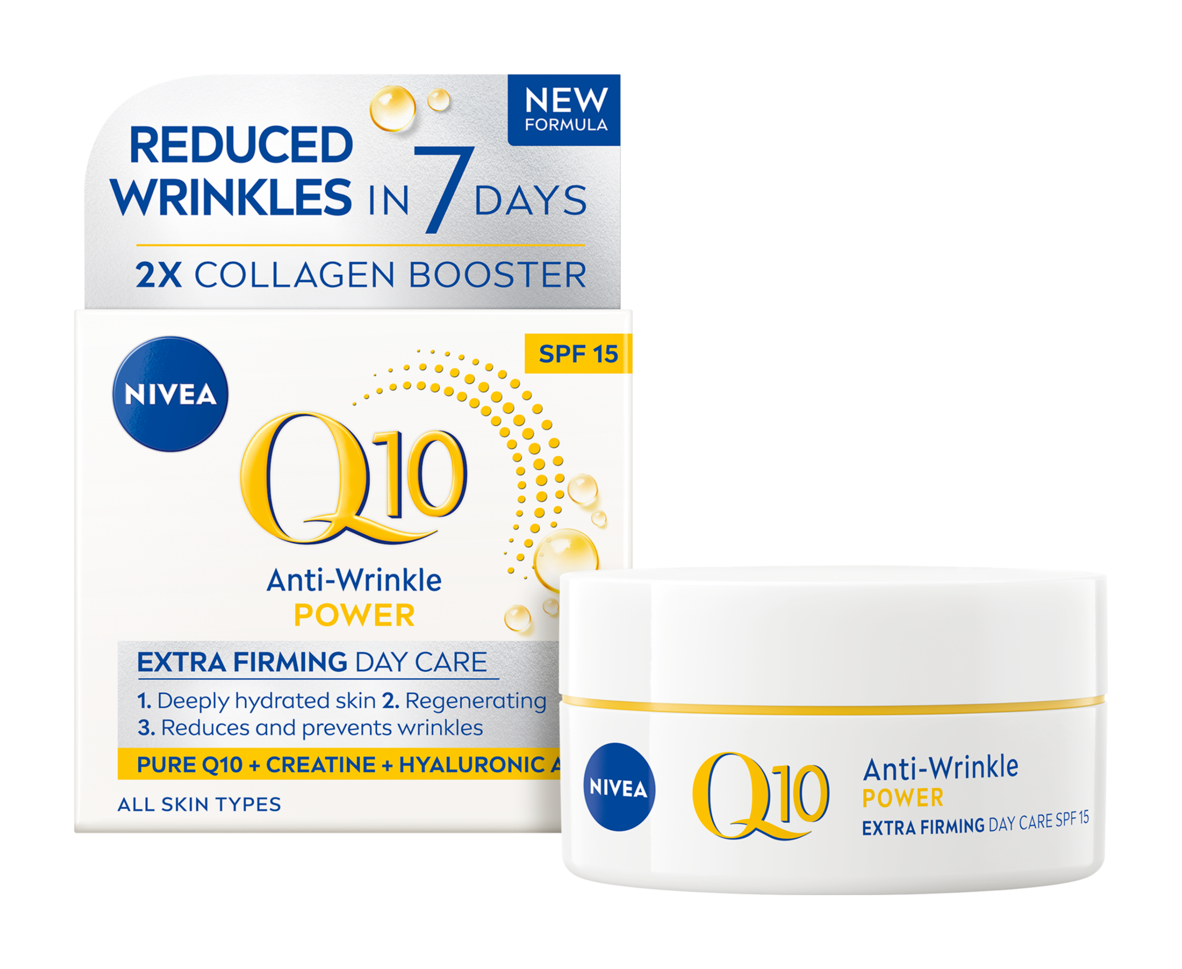 Nivea® Zpevňující denní krém proti vráskám Q10 Power intenzivně o pleť pečuje a hydratuje ji. Pro okamžitě hladší a jemnější pleť.