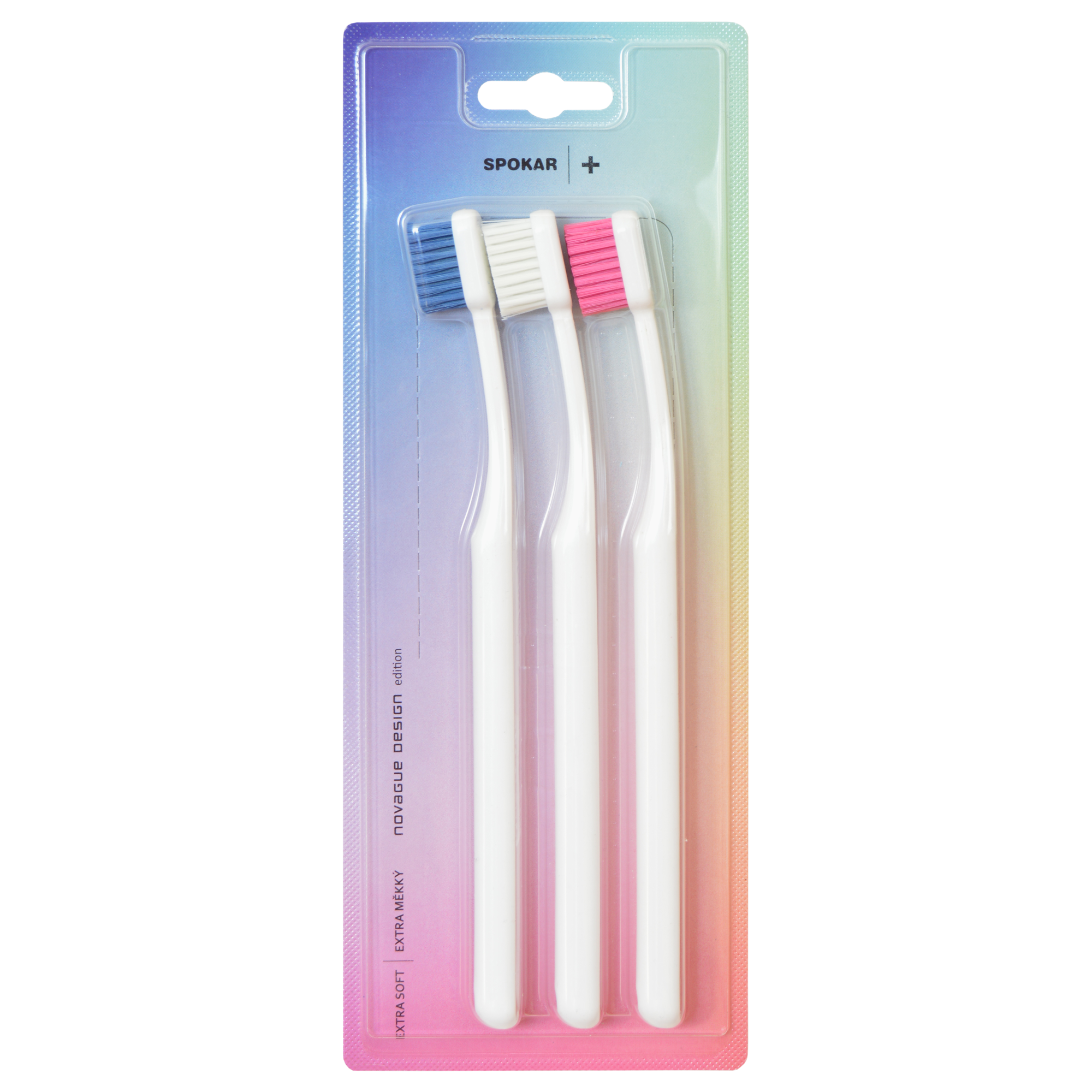 Balení obsahuje: 3 ks zubního kartáčku SPOKAR +, extra měkký.