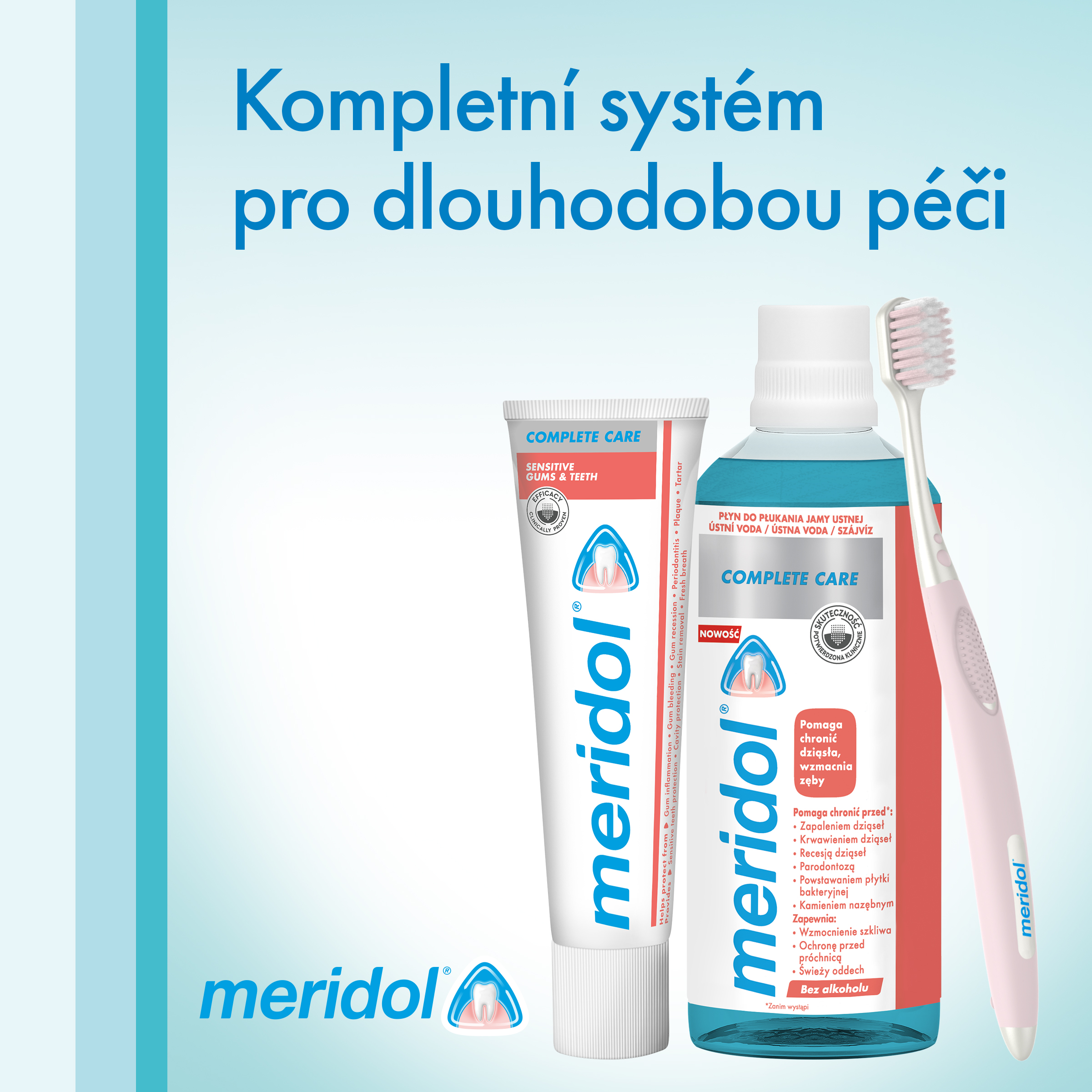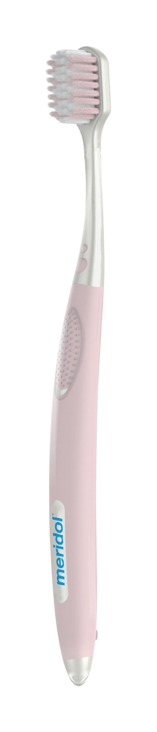 Dosáhněte výjimečného čištění svých citlivých zubů a dásní používáním zubního kartáčku meridol® Complete Care. Tento měkký zubní kartáček byl speciálně vyvinut s odborníky pro citlivé dásně a zuby a byl také vědecky testován. Tento zubní kartáček vhodný pro péči o citlivé dásně jemně masíruje okraje oslabených dásní a poskytuje lepší čištění* a zároveň nabízí příjemnější pocit. S jemnějšími vlákny než má běžný kartáček s rovně zastřiženými vlákny a se zúženými konci vláken, tento zubní kartáček vhodný pro péči o citlivé zuby snižuje tlak na vaše dásně, zároveń jeho kompaktní a širší hlava má vlákna dvou výšek, která jsou šetrná k citlivým dásním a zubům. Tento zubní kartáček meridol vhodný pro péči o dásně má také ergonomicky tvarovanou měkkou rukojeť, která vám poskytuje pohodlnější ovládání při čištění, a je vyrobena ze 40 % z recyklovaného plastu. *Vs běžný zubní kartáček s rovně zastřiženými vlákny