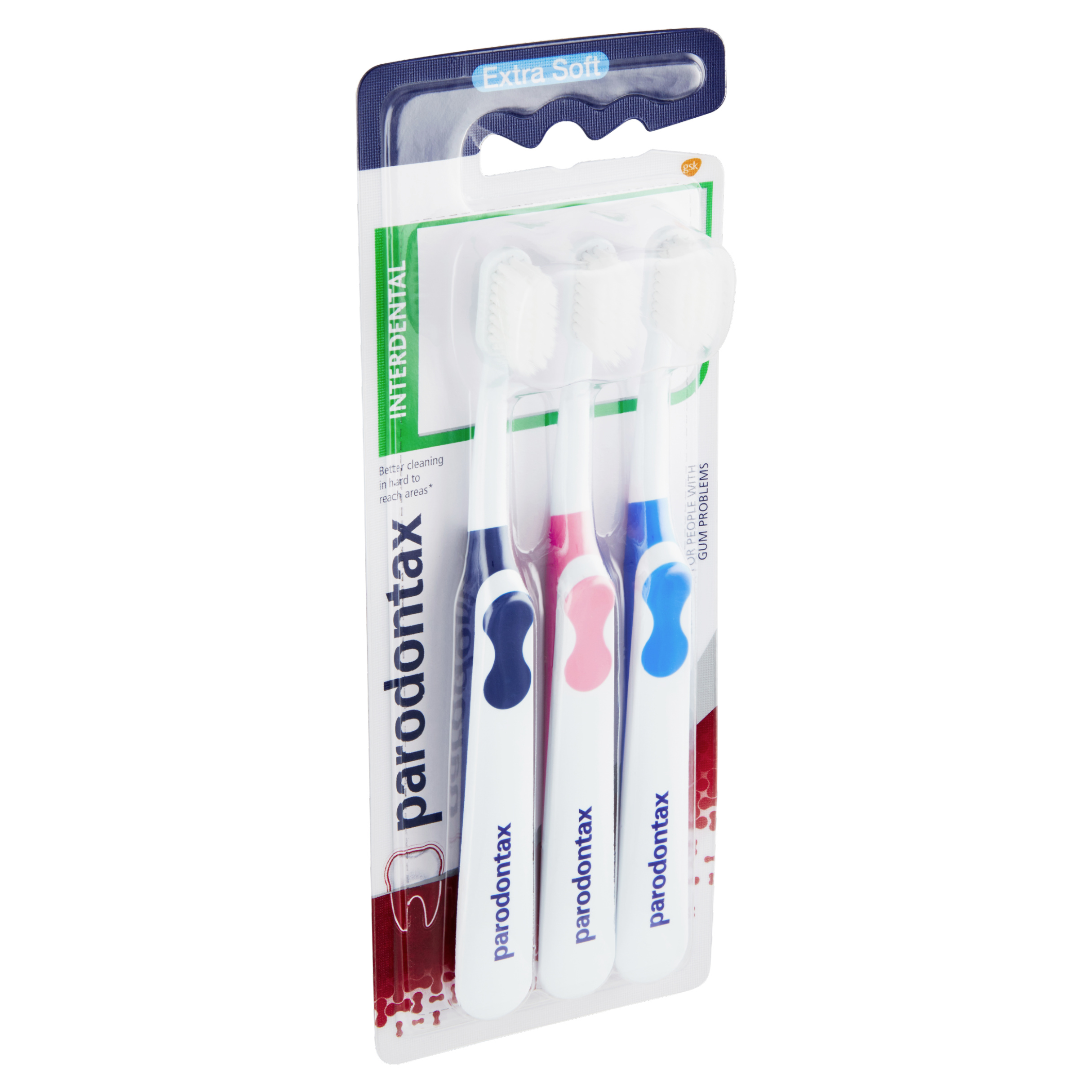 Usazování plaku může způsobovat problémy s dásněmi. Zubní kartáček parodontax je speciálně navržen pro lidi s krvácejícími dásněmi. Jeho extra jemná vlákna jsou šetrná k dásním, ale účinná pro odstraňování plaku. Malá hlava kartáčku se zužujícími se extra jemnými vlákny pro čištění mezizubních prostor. Ergonomická rukojeť napomáhá bezpečnému uchopení kartáčku při čištění zubů. Vaši péči o ústní dutinu můžete také podpořit používáním zubní pasty a ústní vody pro každodenní použití parodontax.