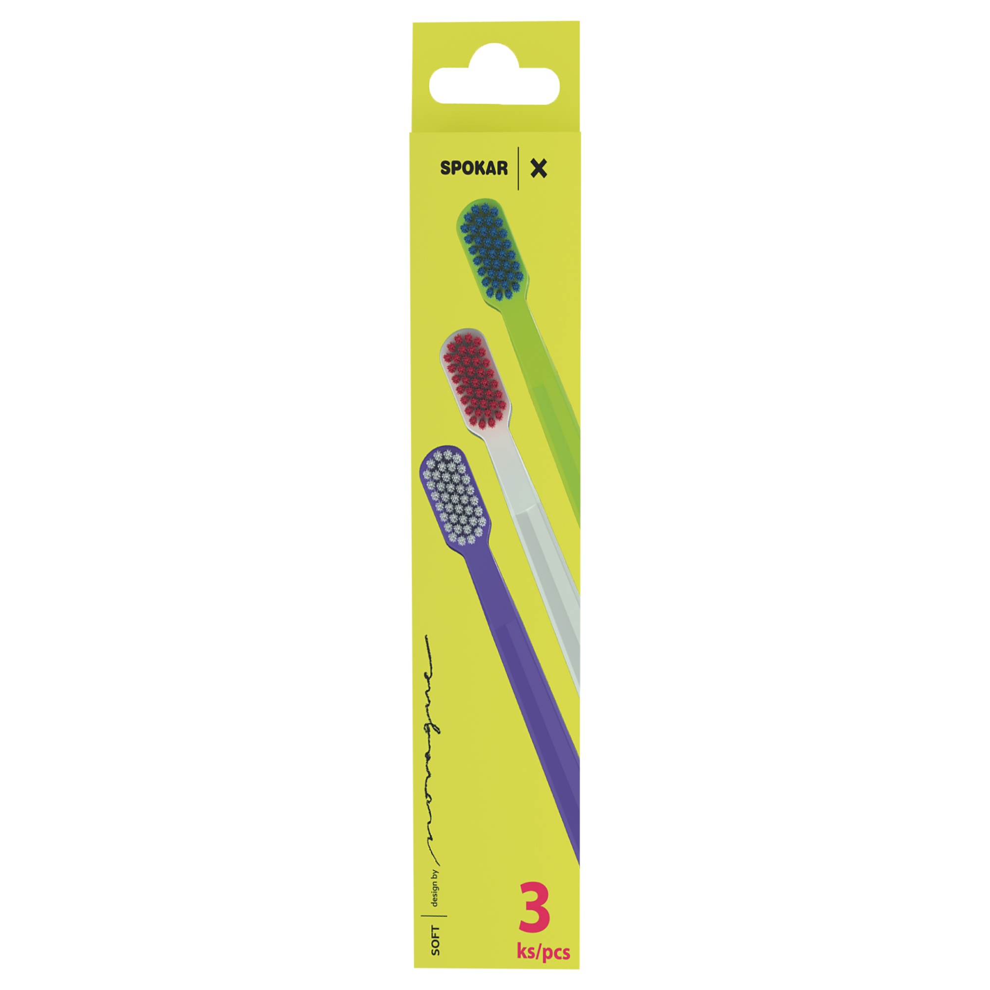 Oblíbený zubní kartáček SPOKAR X je nyní nabízen také v praktickém balení po třech kusech. Papírový obal spolehlivě zajistí ochranu kartáčků při skladování a poté ho lze snadno recyklovat.