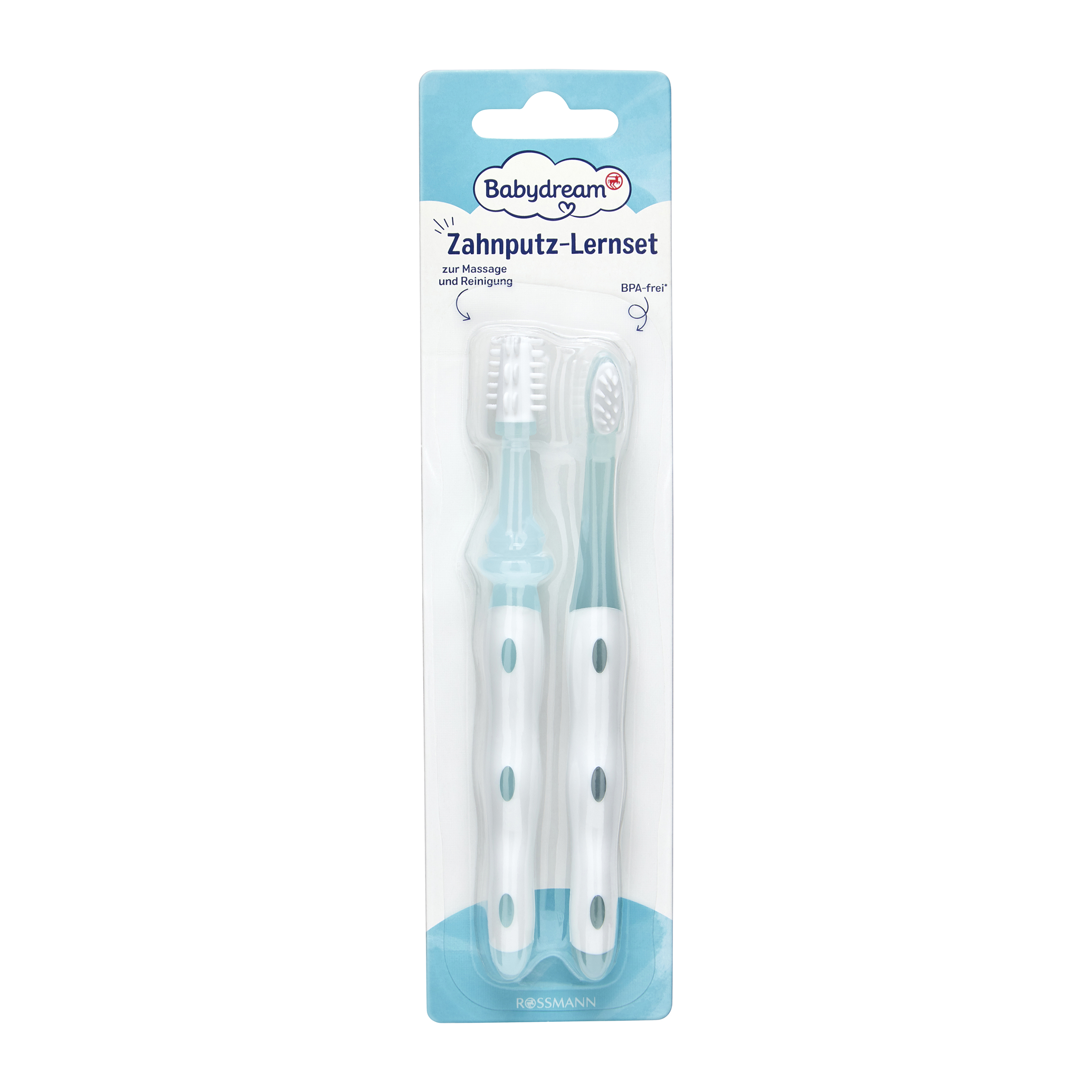 Naše dvoudílná učební sada zubních kartáčků Babydream podporuje vaše miláčky v péči od jejich prvního zoubku. Mírně nakloněné kartáčové hlavy jsou optimálně přizpůsobeny ústům malých dětí a mají měkké, zaoblené štětiny, takže při čištění nic nehrozí. Měkké, ergonomické rukojeti jsou dobré na uchopení pro rodiče, kteří budou pomáhat s čištěním zoubků.