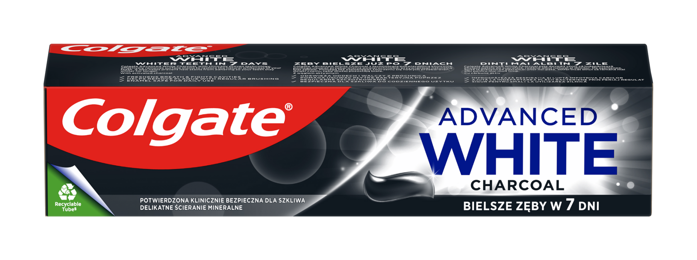 Zubní pasta Colgate Advanced White Charcoal vám zajistí bělejší zuby již za 7 dní. Tato bělicí zubní pasta s klinicky ověřenou technologií pomáhá obnovit přirozenou bělost vašich zubů.