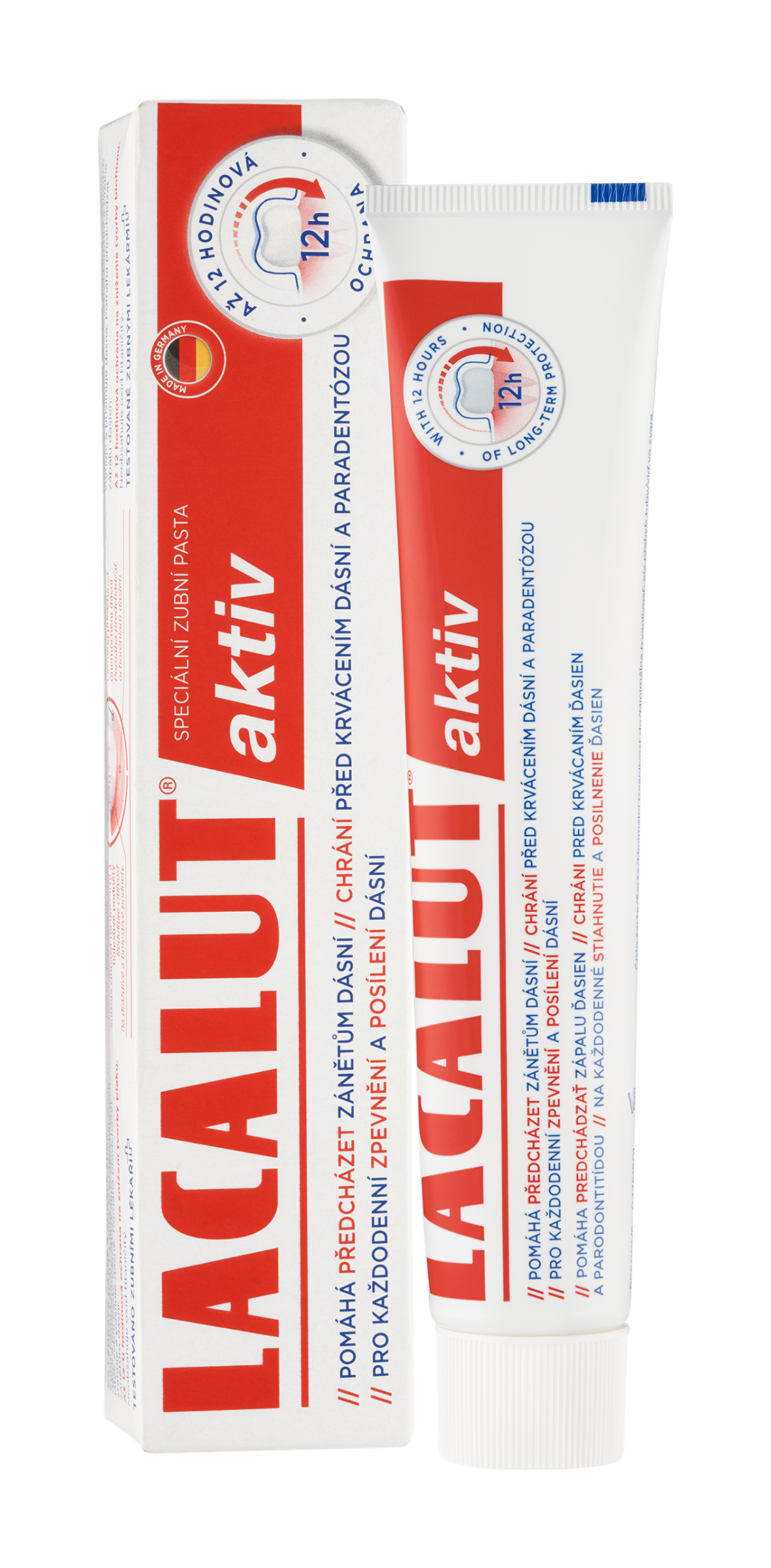 Zubní pasta Lacalut aktiv pro prevenci krvácení dásní a paradentózy. Speciální složení účinných látek zubní pasty Lacalut aktiv okamžitě a citelně stahuje a posiluje dásně. Pomáhá předcházet zánětům dásní. Až 12-ti hodinová ochrana na snížení tvorby plaku. Neobsahuje oxid titaničitý. Perfektní balzám na rty pro každodenní použití - spolehlivě chrání rty před vysoušením a podporuje jejich přirozenou hydrataci.