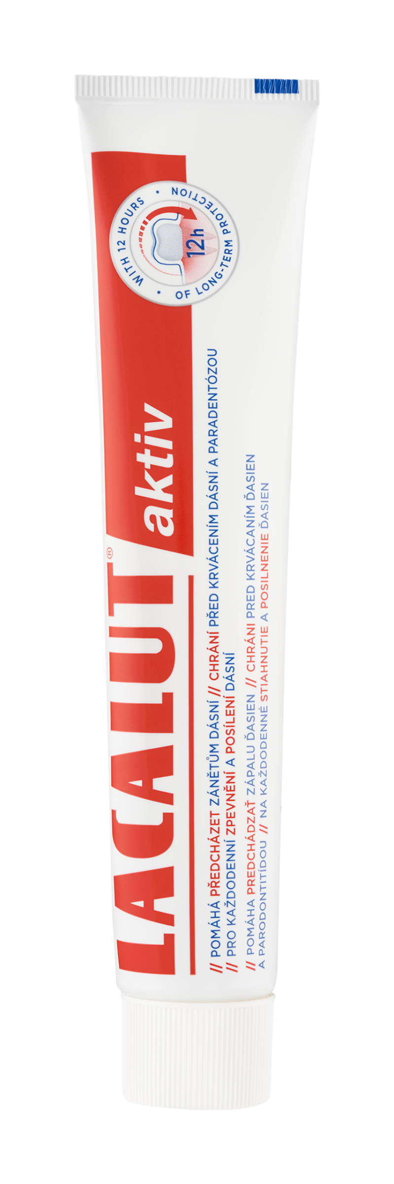 Čistěte si zuby ráno a večer zubní pastou Lacalut aktiv. RDA: střední abrazivita. Pro dospělé a mladistvé od 12 let.