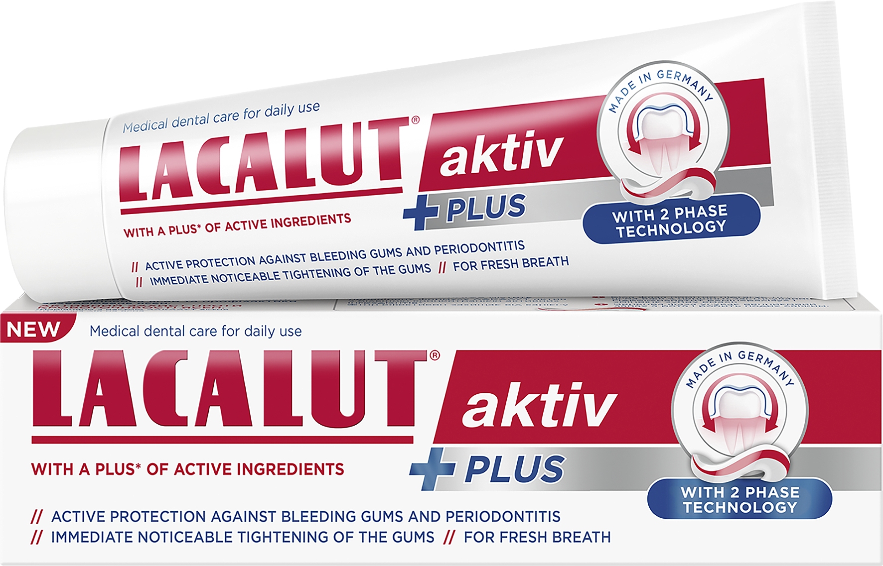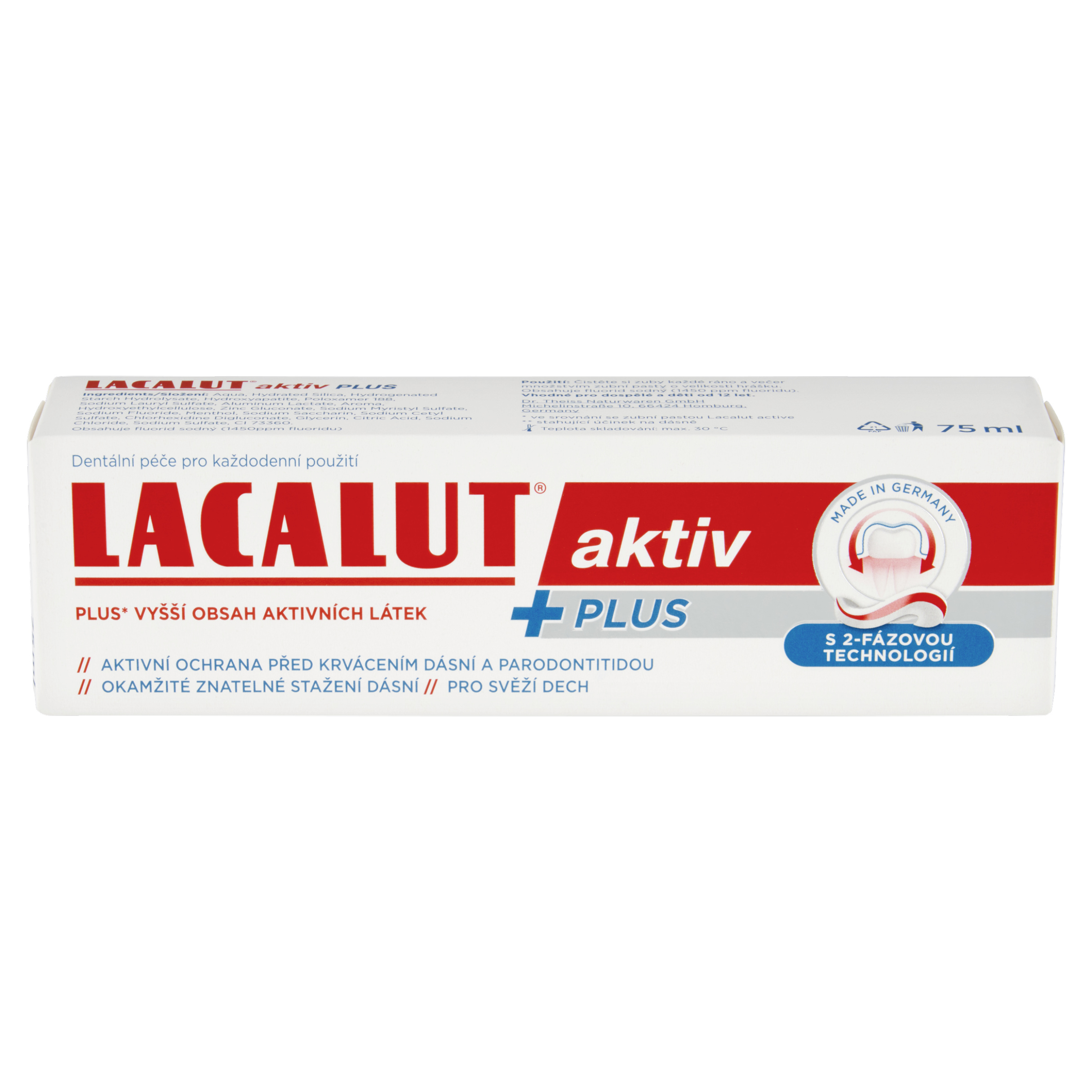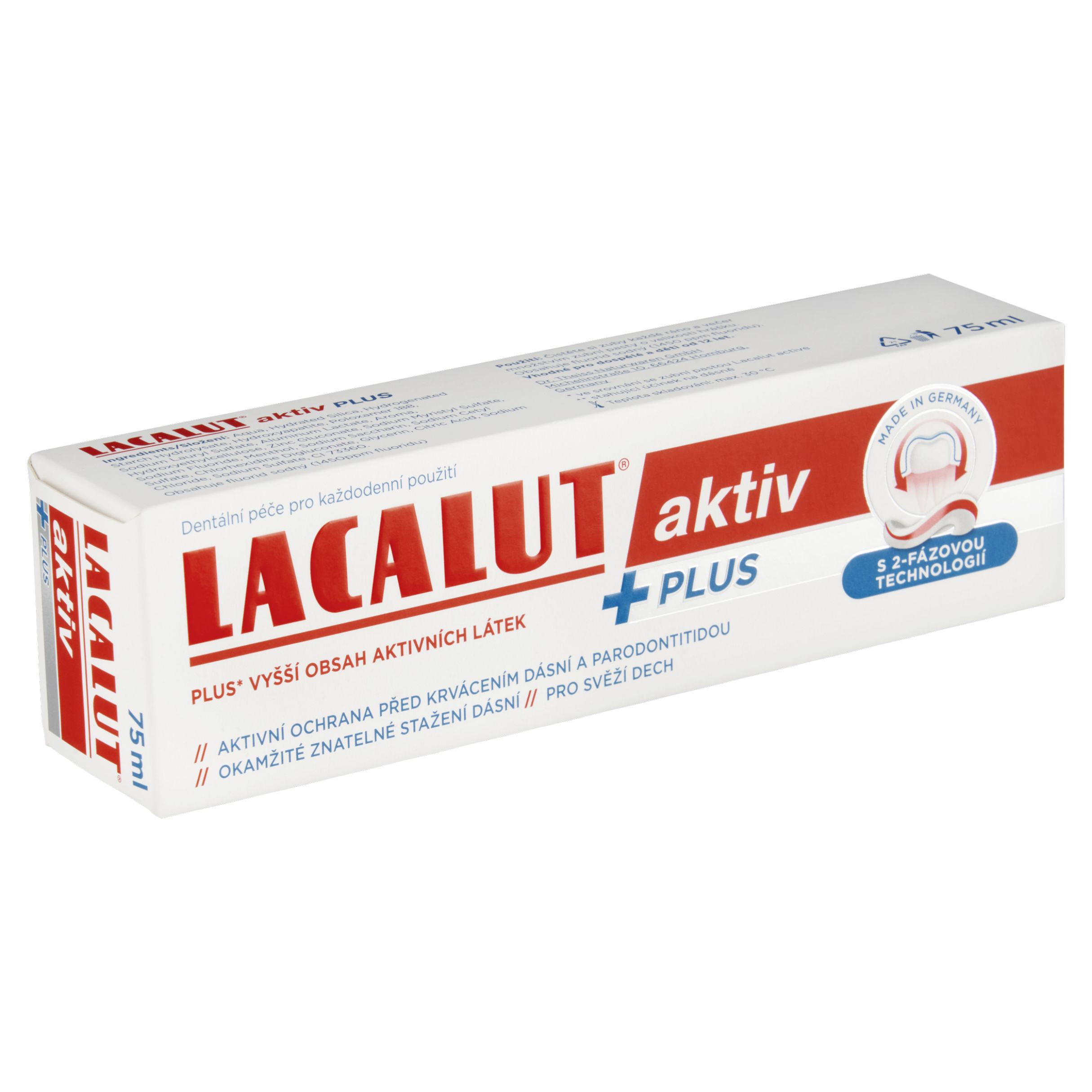 Lacalut® aktiv Plus je speciálně navržený pro ochranu před parodontitidou a krvácením dásní. Pomáhá zpevňovat dásně a předcházet jejich onemocněním. Nabízí 12hodinovou dlouhodobou ochranu a inhibuje tvorbu biofilmu.