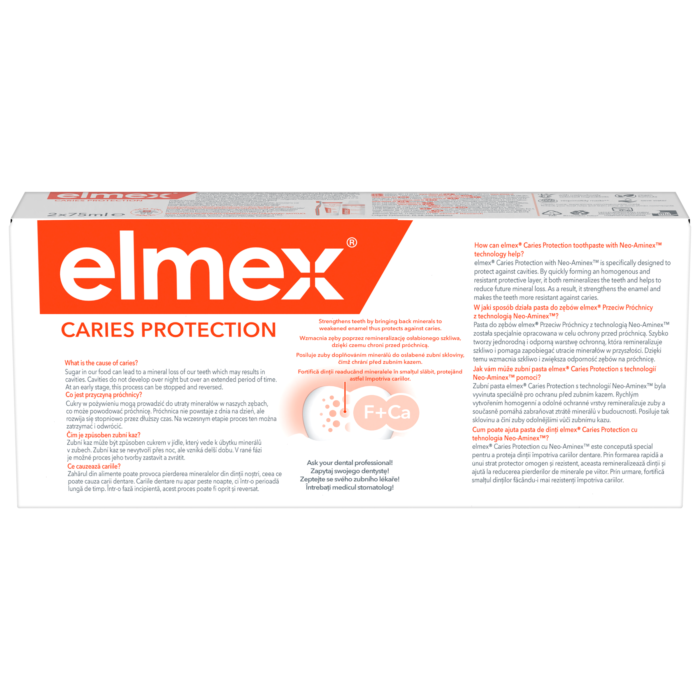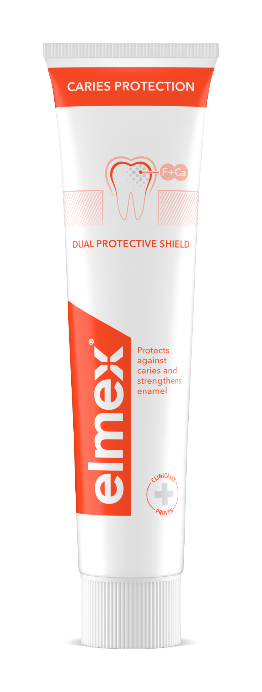 Zubní pasta elmex® Caries Protection je určena k ochraně před zubním kazem remineralizací oslabené skloviny. Zubní pasta proti zubnímu kazu vytváří ochrannou vrstvu a pomáhá snižovat budoucí ztrátu minerálů.
