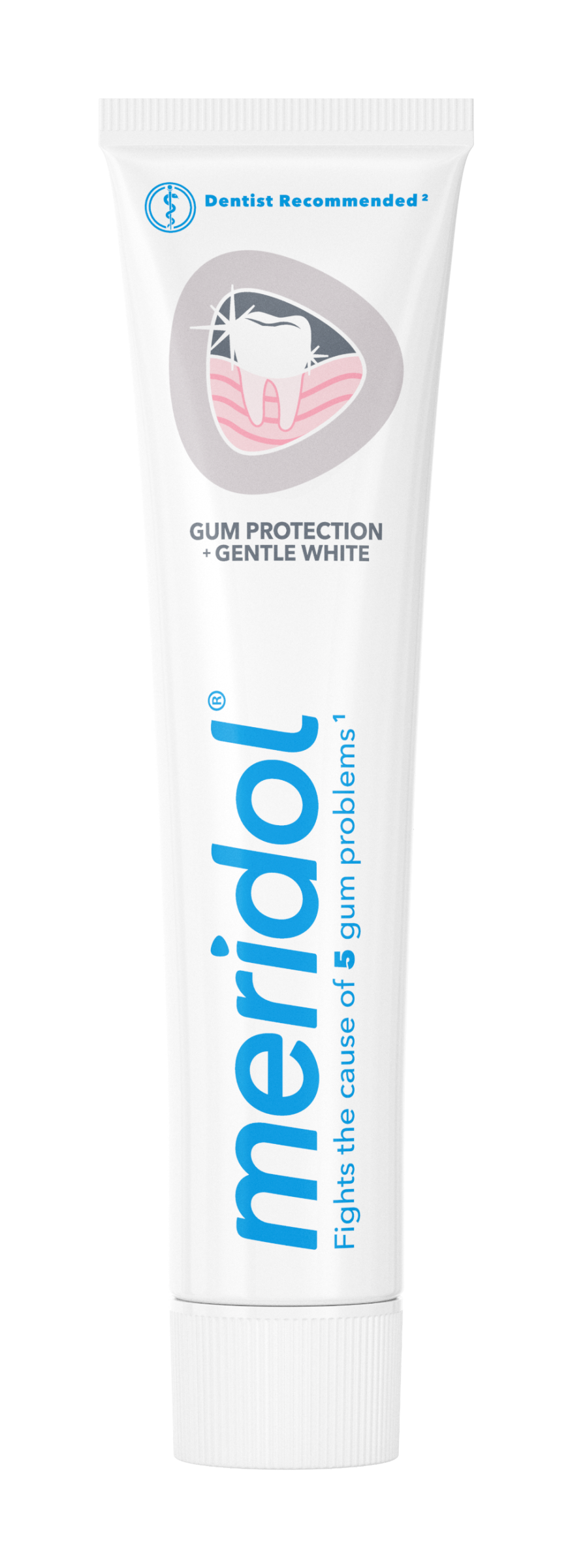 Zubní pasta meridol® Ochrana dásní + jemné bělení pomáhá bojovat s příčinou 5 problémů dásní: krvácení, zánět, citlivost, zápach z úst a zubní kámen.* *Redukce plaku při pravidelném používání dříve, než se problémy objeví.
