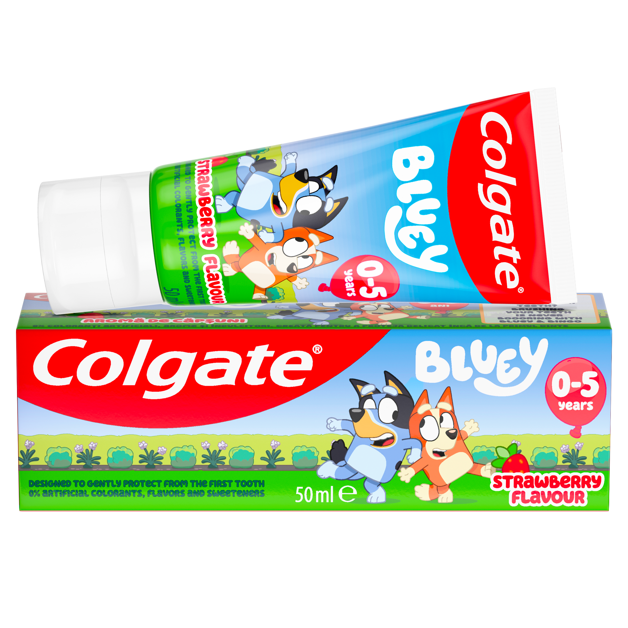 Dopřejte zoubkům svých dětí tu nejlepší péči se zubní pastou Colgate Kids Bluey 0-5 let. S touto dětskou zubní pastou s jahodovou příchutí budete šetrně pečovat o mléčné zuby a užijete si skutečnou zábavu s Bluey a Bingo.