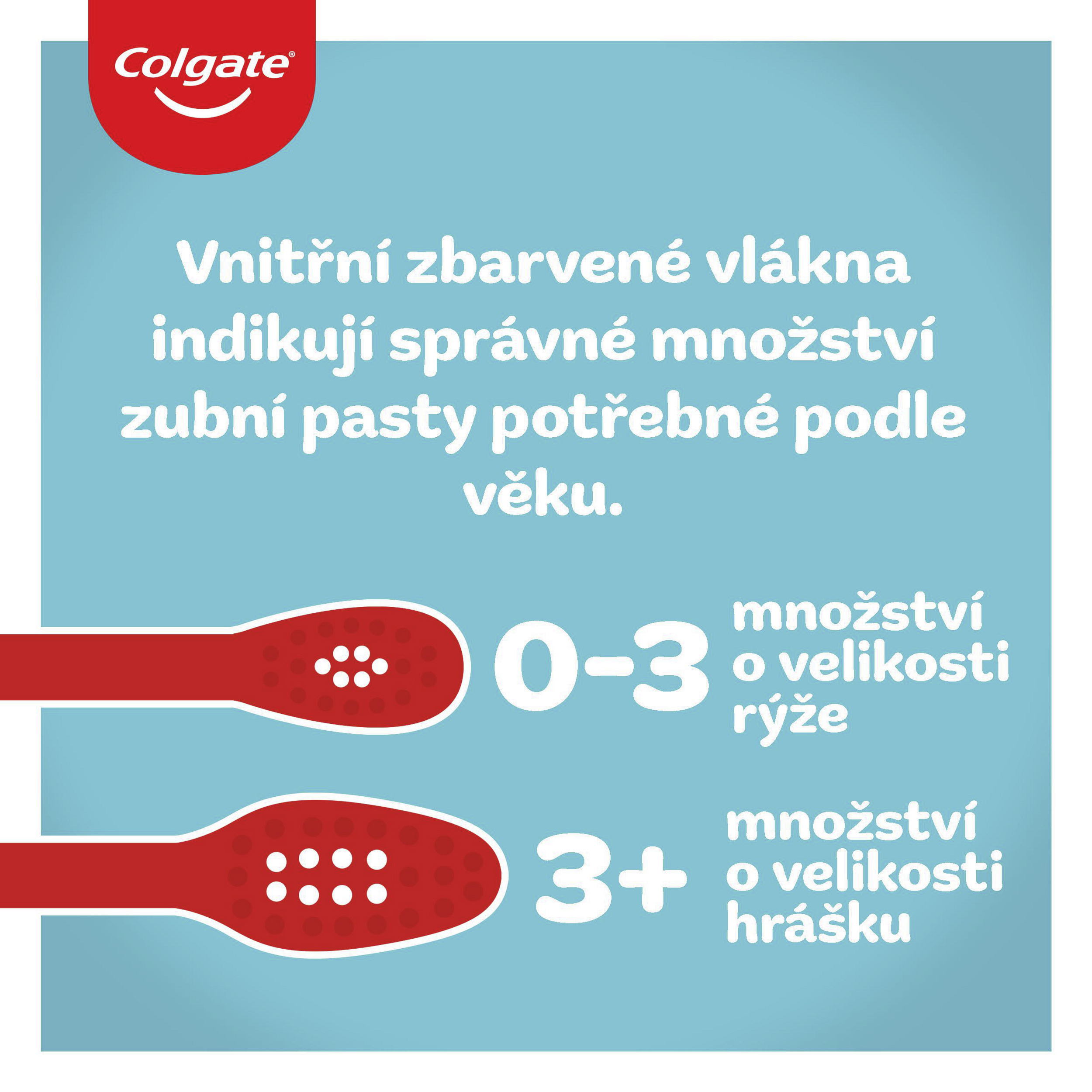 Po vyčištění zubů zkontrolujte, že dítě vše vyplivlo, abyste omezili spolknutí pasty na minimum. Ústa nevyplachujte vodou. Děti do 3 let: Slabě potřete kartáček zubní pastou. Děti do 6 let včetně: Pro čištění zubů pod dohledem dospělého použijte množství o velikosti zrnka hrachu, abyste omezili spolknutí pasty na minimum. Pokud je fluorid přijímán z jiných zdrojů, konzultujte svého zubního nebo praktického lékaře.