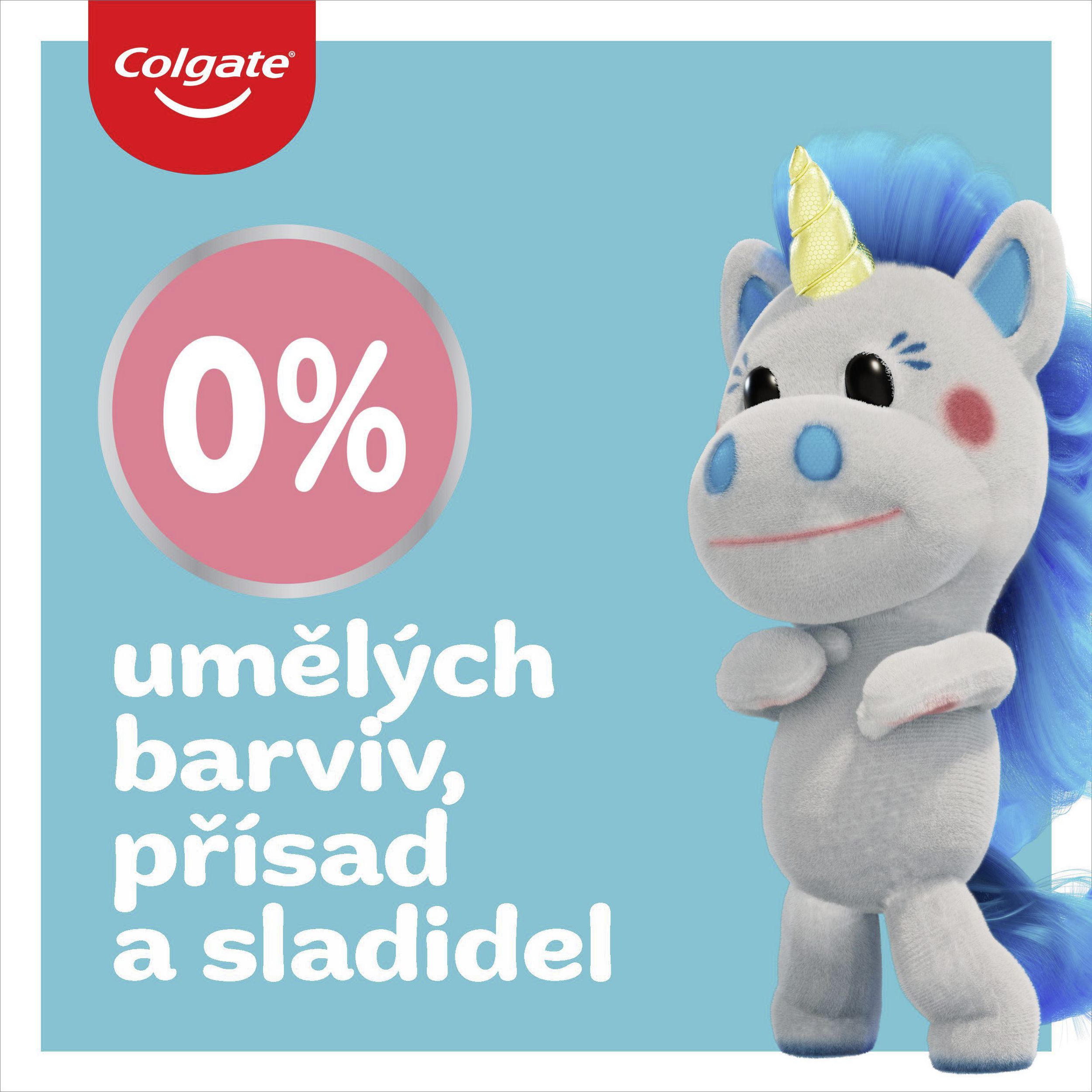 Pomozte svým dětem vypěstovat si zdravý návyk pravidelného čištění zubů. S dětskou zubní pastou Colgate Kids Bluey (0-5 let) se z čištění s Bluey a Bingo může stát příjemná součást každého dne. Tato dětská zubní pasta je navržena speciálně pro citlivé dětské zoubky - obsahuje doporučené množství fluoridu a jemně pečuje o jejich zoubky. Díky sladké jahodové příchuti, kterou děti opravdu rády, a absenci umělých barviv, příchutí i sladidel je to čistá péče pro ty nejmenší. Navíc její speciální složení chrání křehkou zubní sklovinu, takže první úsměvy vašich dětí budou jen zářit - stejně jako úsměvy Bluey a Binga.