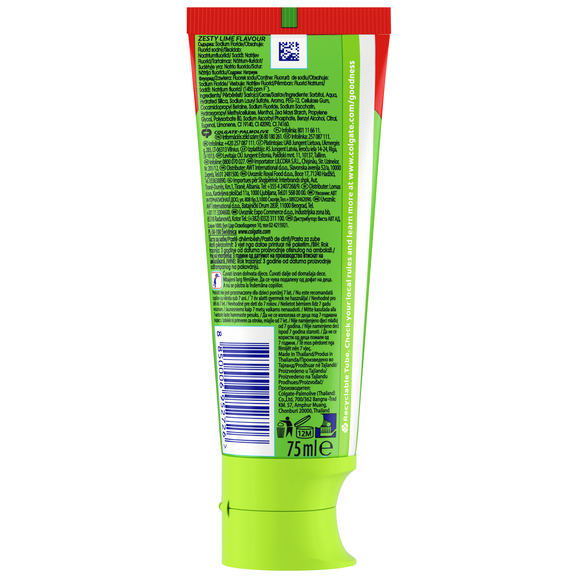 Probuďte své smysly a dopřejte si energizující ovocné osvěžení při čištění zubů s ochucenou zubní pastou Colgate Max Fresh Fruit Fusion Zesty Lime. Tato ovocná zubní pasta s Ultrafreeze technologií přináší senzační příchuť svěžích citrusů včetně citrónu, limetky a pomeranče přičemž nabízí dechberoucí 10x déle trvající* svěží dech. Kromě skvělé a překvapivé příchuti, tato ochucená zubní pasta čistí vaše zuby a bojuje proti zubnímu kazu díky obsahu fluoridu. Je také vytvořena pro to, aby chránila vaši zubní sklovinu a tím chránila váš úsměv. Užijte si svěží zážitek pokaždé, když si čistíte zuby s Colgate. *vs klasická fluoridová zubní pasta