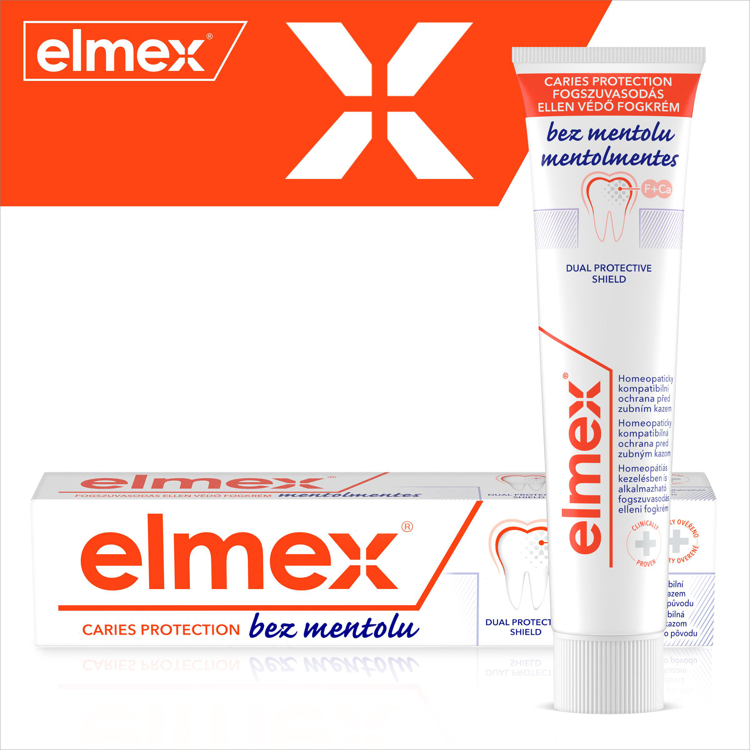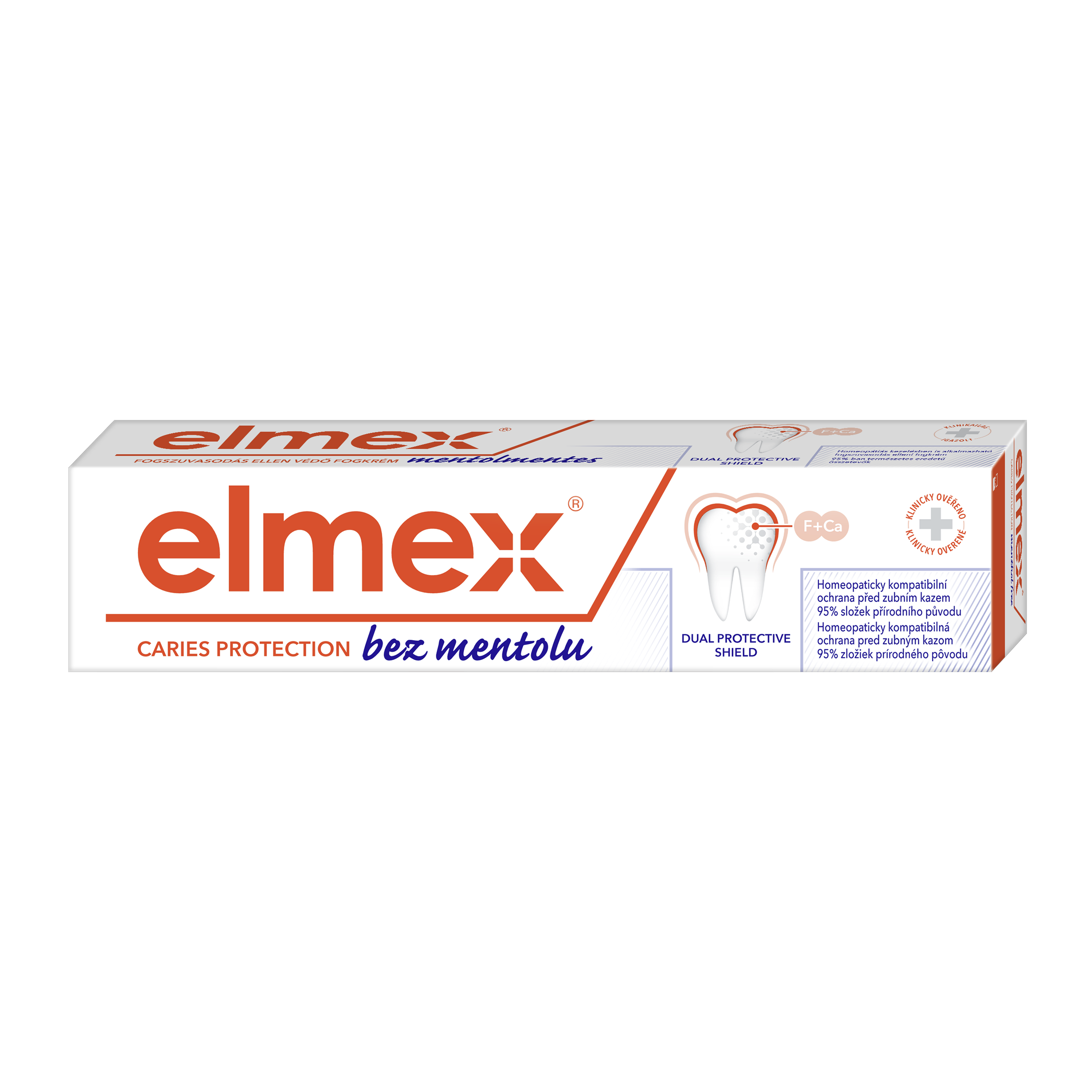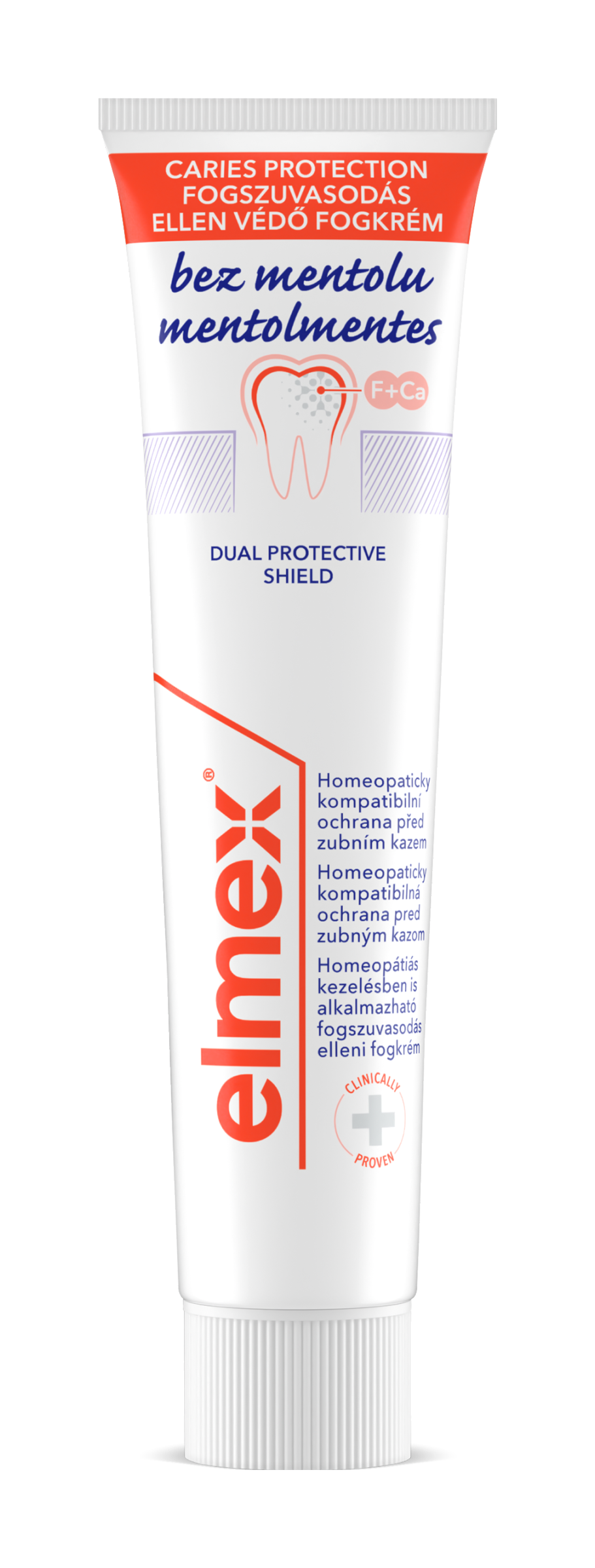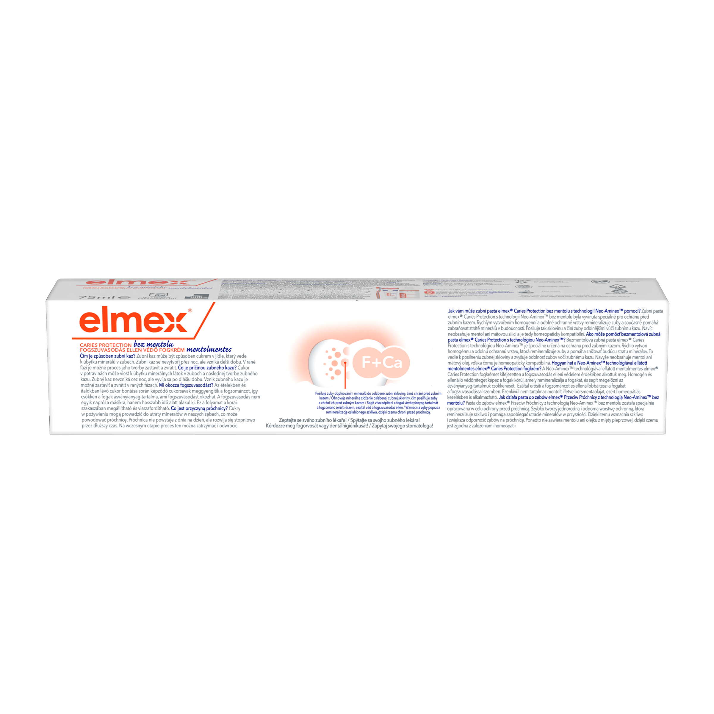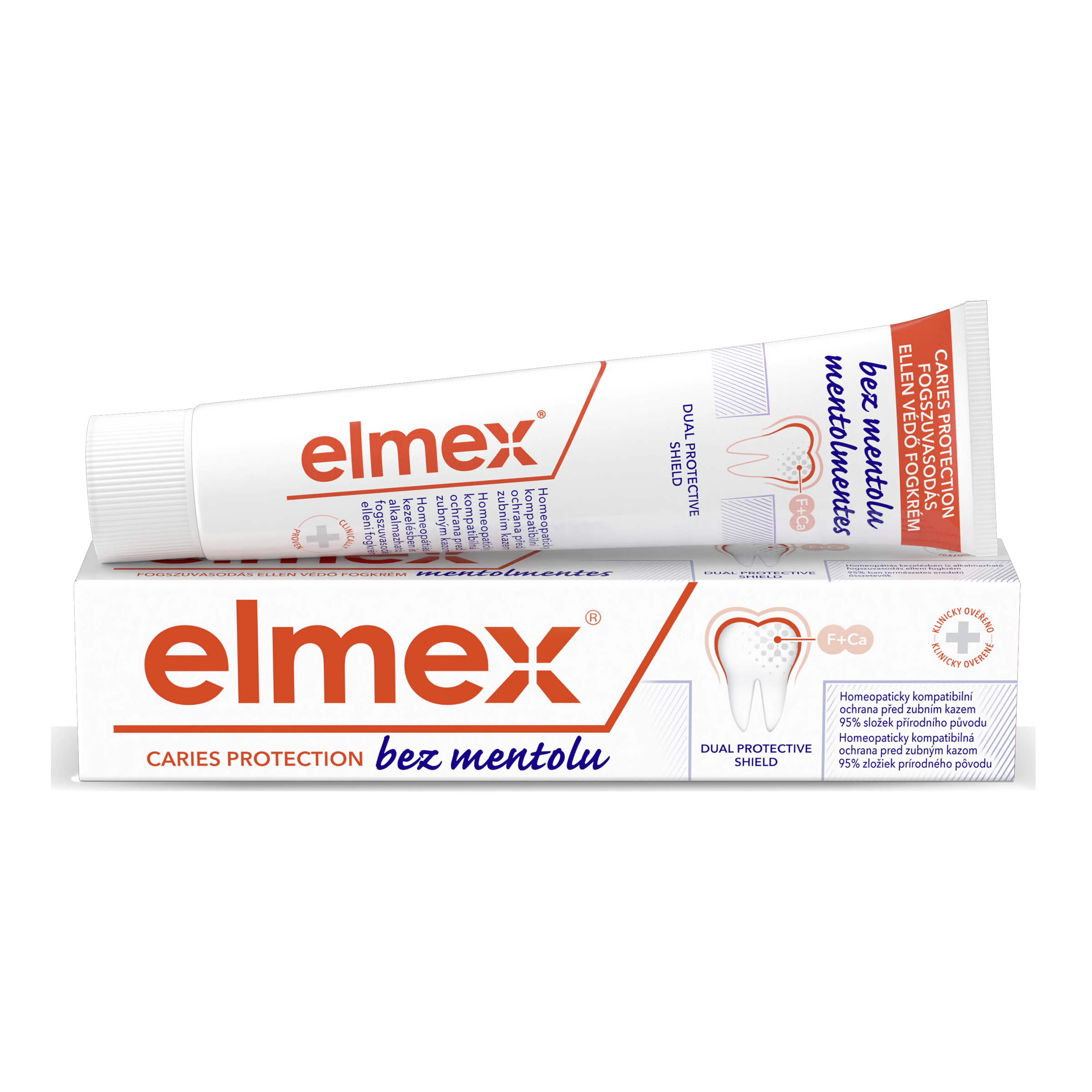 Zubní pasta elmex® Caries Protection bez mentolu chrání před zubním kazem remineralizací oslabené skloviny. Zubní pasta proti zubnímu kazu vytváří ochrannou vrstvu a pomáhá snižovat budoucí ztrátu minerálů.
