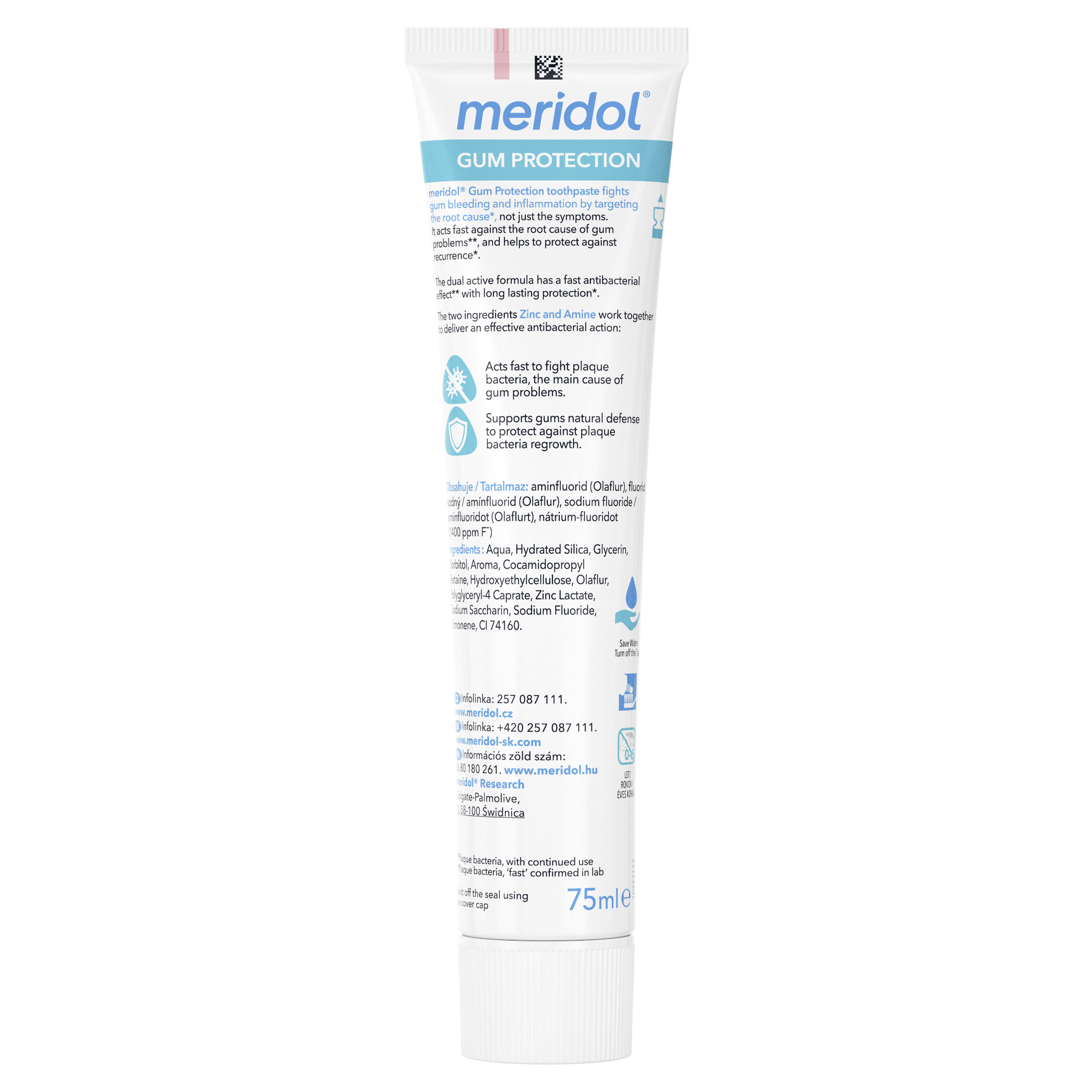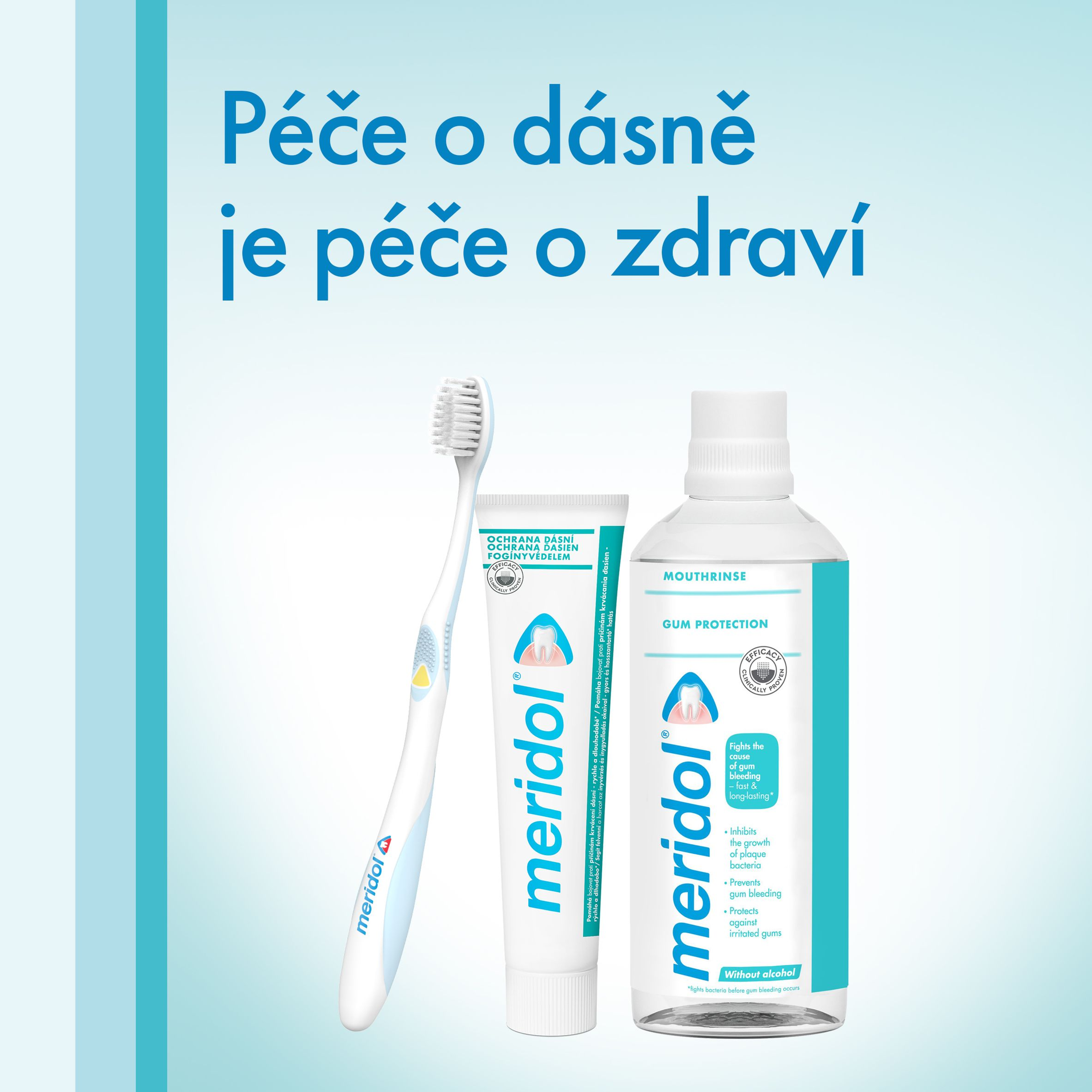 - Pro optimální ochranu používejte pastu meridol®Gum Protection jako součást každodenní péče o ústní dutinu společně s ústní vodou meridol®Gum Protection a zubním kartáčkem meridol®Gum Protection.
