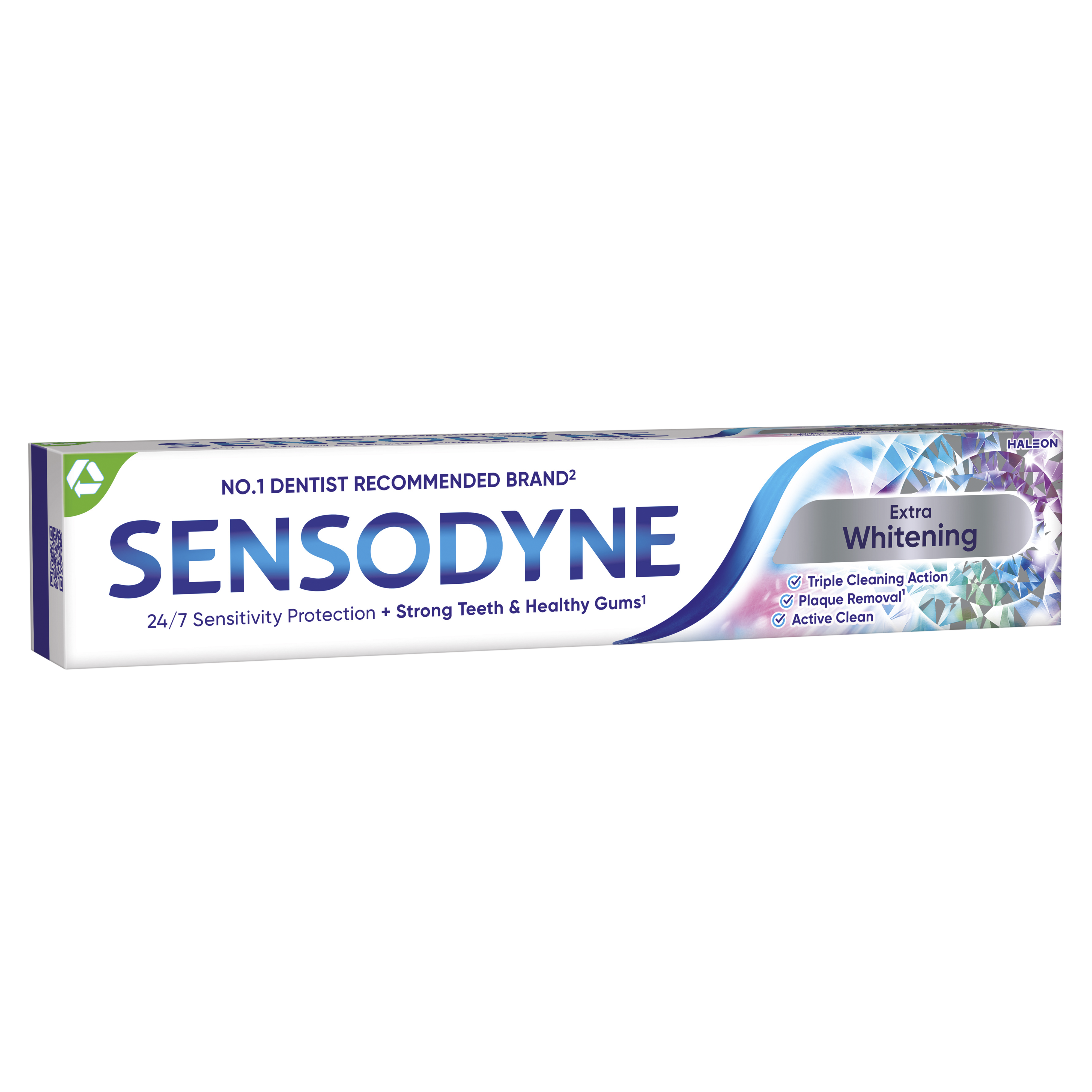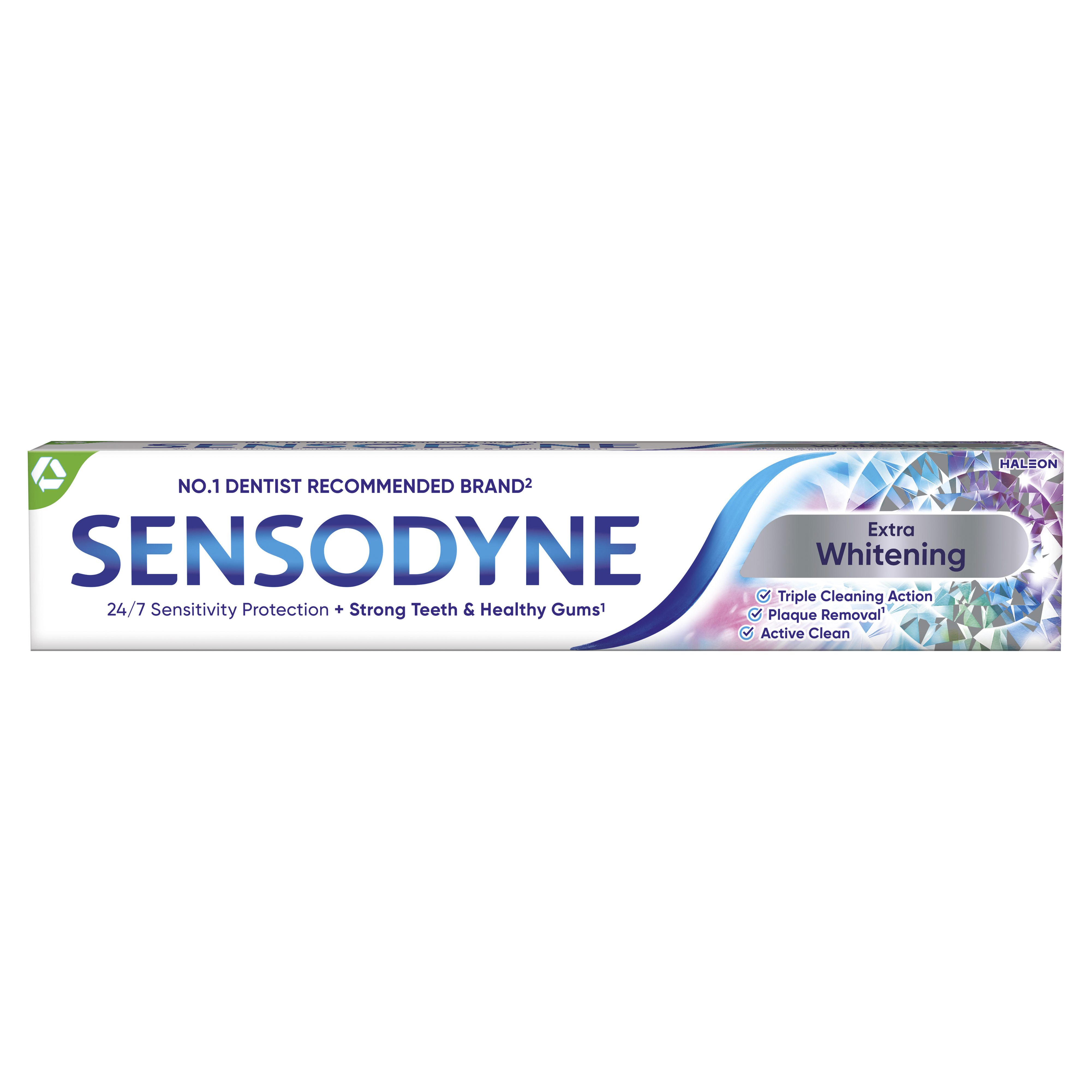 Sensodyne Extra Whitening je zubní pasta na každodenní použití s obsahem fluoridu, která poskytuje všechny výhody běžné zubní pasty. 24/7 ochrana citlivých zubů + silnější zuby & zdravé dásně¹. Co je citlivost zubů? Mnoho lidí trpí bolestí citlivých zubů. Tento problém vzniká, když se sklovina opotřebuje nebo dásně ustoupí a dochází k obnažení dentinu. Následně to může vést ke zvýšené citlivosti zubů, která se objevuje například při konzumaci teplých a studených jídel a nápojů.