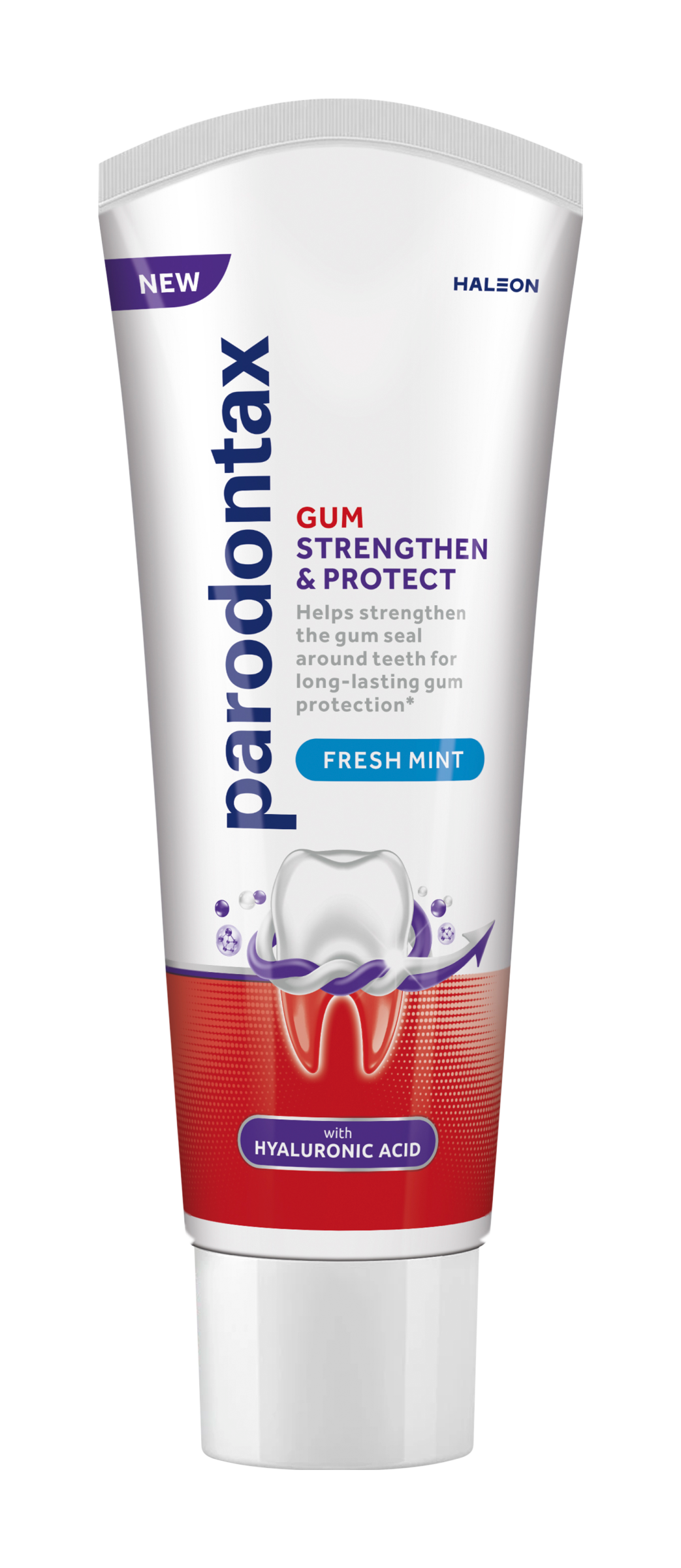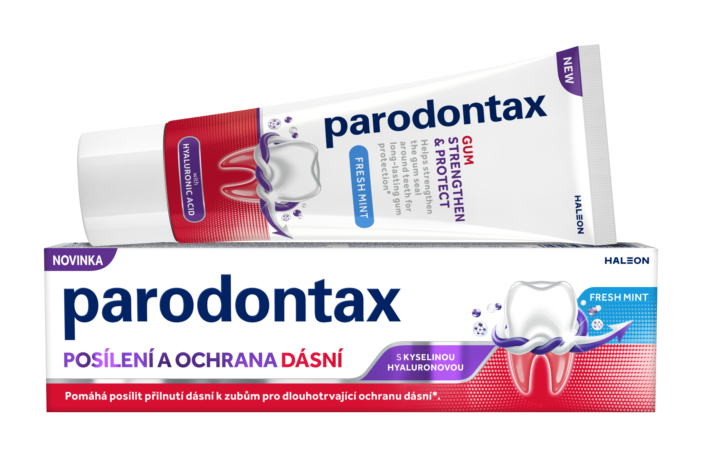 Pomáhá posílit přilnutí dásní k zubům pro dlouhotrvající ochranu dásní* *při dlouhodobém používání 2x denně. Zubní pasta parodontax Posílení a ochrana dásní Fresh Mint posiluje přilnutí dásní k zubům pro dlouhotrvající ochranu dásní* a pomáhá předcházet hromadění zubního plaku. Parodontax Posílení a ochrana dásní Fresh Mint je zubní pasta obohacená o kyselinu hyaluronovou, což je klíčový stavební kámen silných dásní, která pomáhá snížit přilnavost bakterií a tvorbu zubního plaku.
