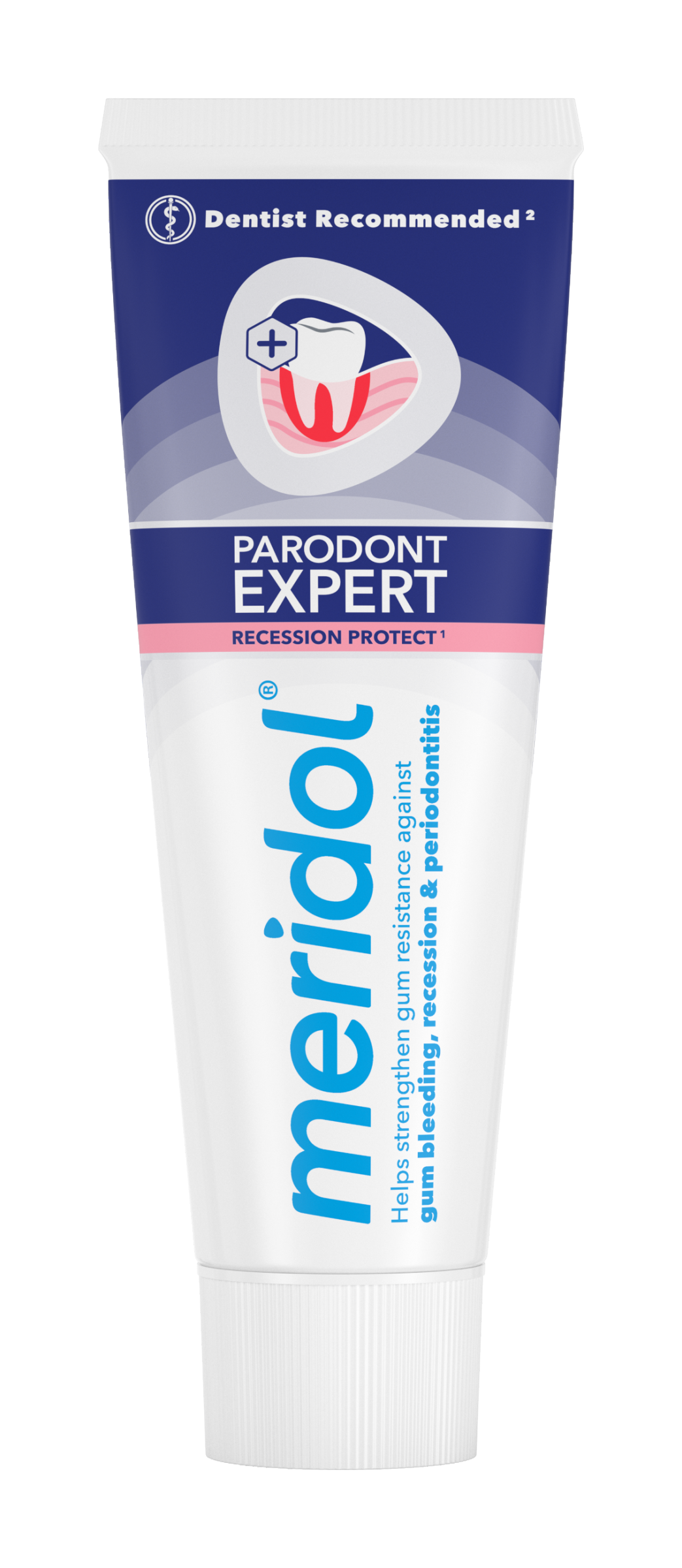 Zubní pasta meridol®Parodont Expert bojuje proti příčině krvácení a dalších problémů dásní* a pomáhá zvyšovat odolnost dásní proti ústupu dásní a dalším problémům dásní.