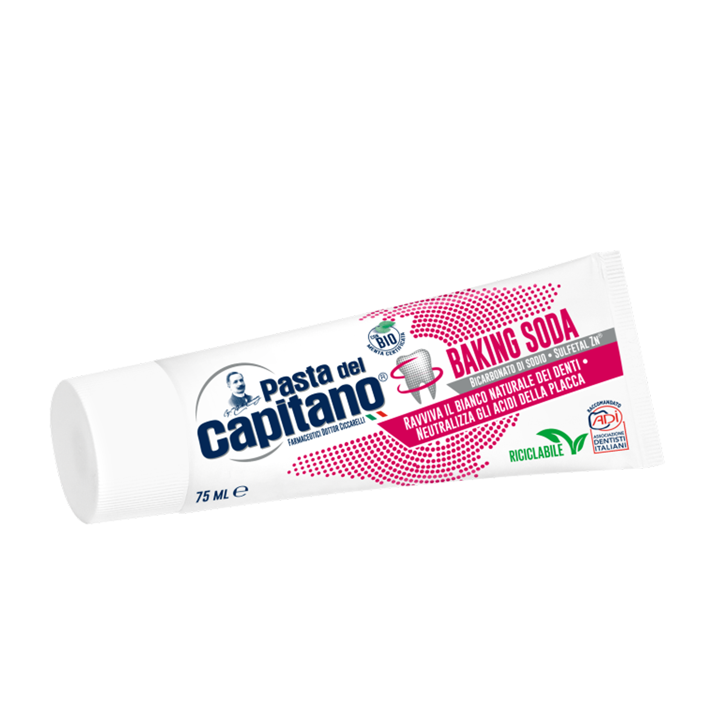 Zubní pasta s jedlou sodou bicarbonou. Bělost zubů díky přítomnosti hydrogenuhličitanu sodného, který přírodně bělí zuby bez poškození skloviny. Jeho složení pomáhá neutralizovat kyseliny bakteriálního plaku, oživuje bělost zubů. Dále obsahuje bio mátu, vzácnou složku přírodního původu, která zaručuje bezpečnou a svěží hygienu. Pro celou rodinu.