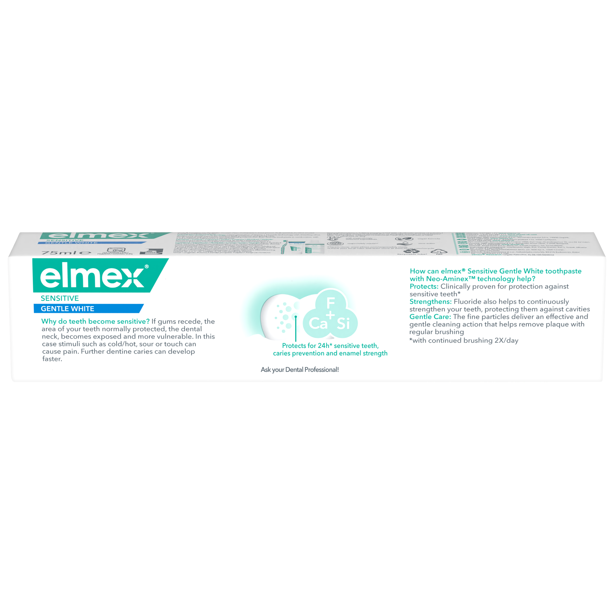 Citlivé zuby mohou způsobit nepříjemné pocity a ovlivnit váš každodenní život. S pomocí zubní pasty elmex® Sensitive Gentle White můžete získat 24hodinovou* ochranu před citlivostí zubů, kterou hledáte. Citlivost zubů je často způsobena ustupujícími dásněmi, které jinak chrání zubní krčky vašich zubů. V případě ústupu dásní se zubní krčky obnaží a stanou se zranitelnými vůči horkým, studeným, kyselým nebo sladkým podnětům, což může způsobit bolest nebo nepříjemné pocity. Zubní pasta elmex® Sensitive Gentle White pro citlivé zuby byla vyvinuta s technologií Neo-Aminex™ a nabízí trojí ochranu: