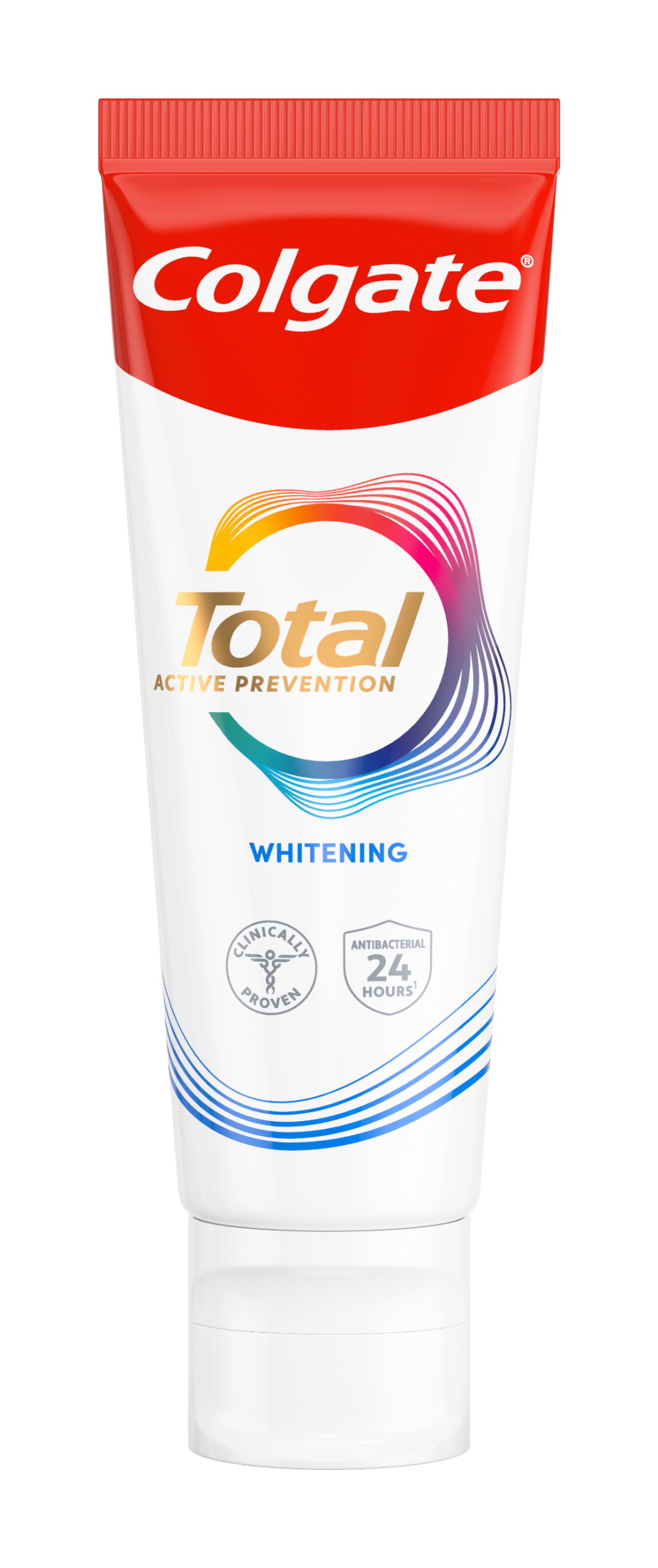 Zubní pasta Colgate Total Active Prevention Whitening 75 ml je klinicky ověřená a aktivně předchází mnoha problémům ústního zdraví díky 24hodinové antibakteriální ochraně*. *Při čištění dvakrát denně po dobu 4 týdnů