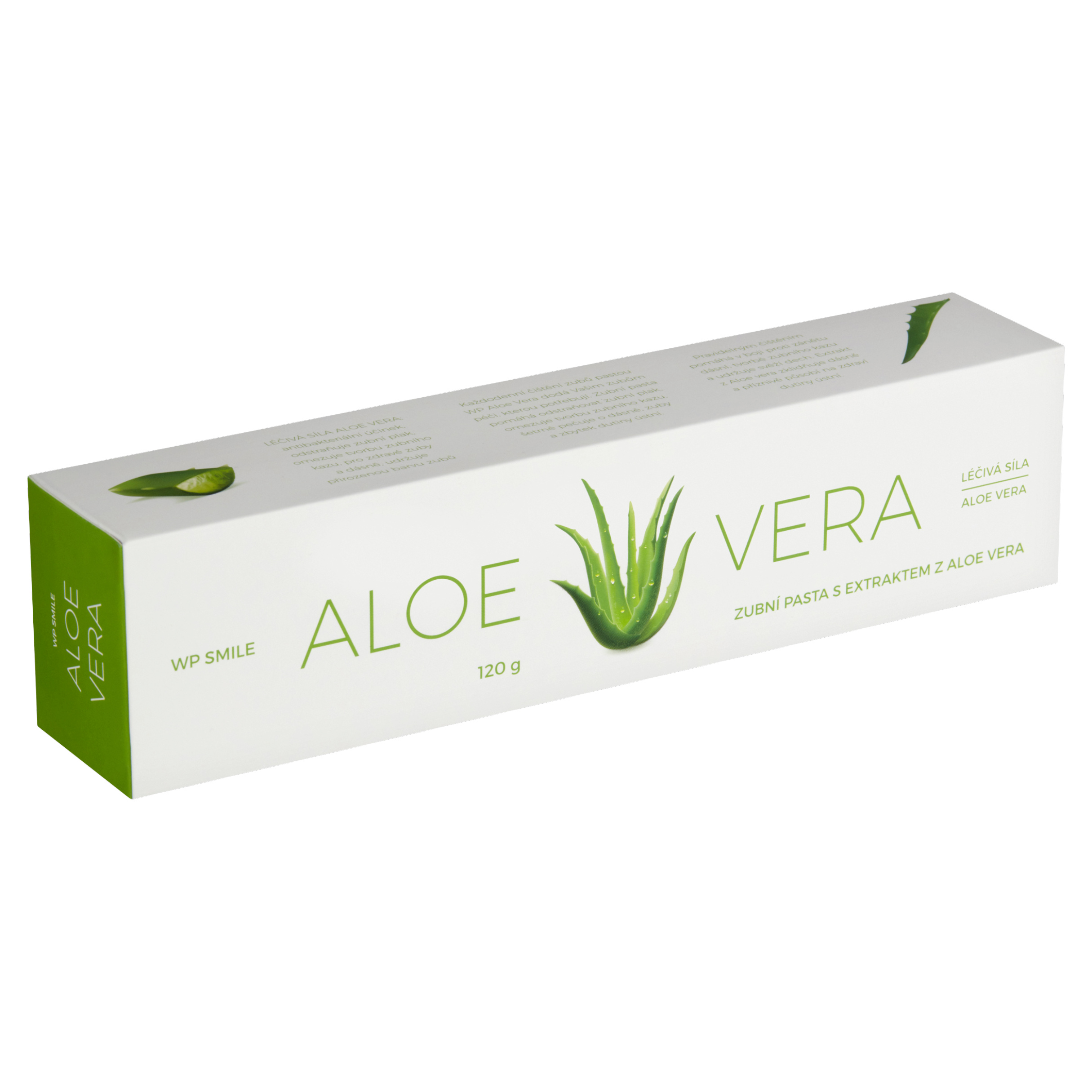 Léčivá síla aloe vera: antibakteriální účinek, odstraňuje zubní plak, omezuje tvorbu zubního kazu, pro zdravé zuby a dásně, udržuje přirozenou barvu zubů. Každodenní čištění zubů pastou WP Aloe Vera dodá Vašim zubům péči, kterou potřebují. Zubní pasta pomáhá odstraňovat zubní plak, omezuje tvorbu zubního kazu, šetrně pečuje o dásně, zuby a zbytek dutiny ústní. Pravidelným čištěním pomáhá v boji proti zánětu dásní, tvorbě zubního kazu a udržuje svěží dech. Extrakt z Aloe vera zklidňuje dásně a příznivě působí na zdraví dutiny ústní.